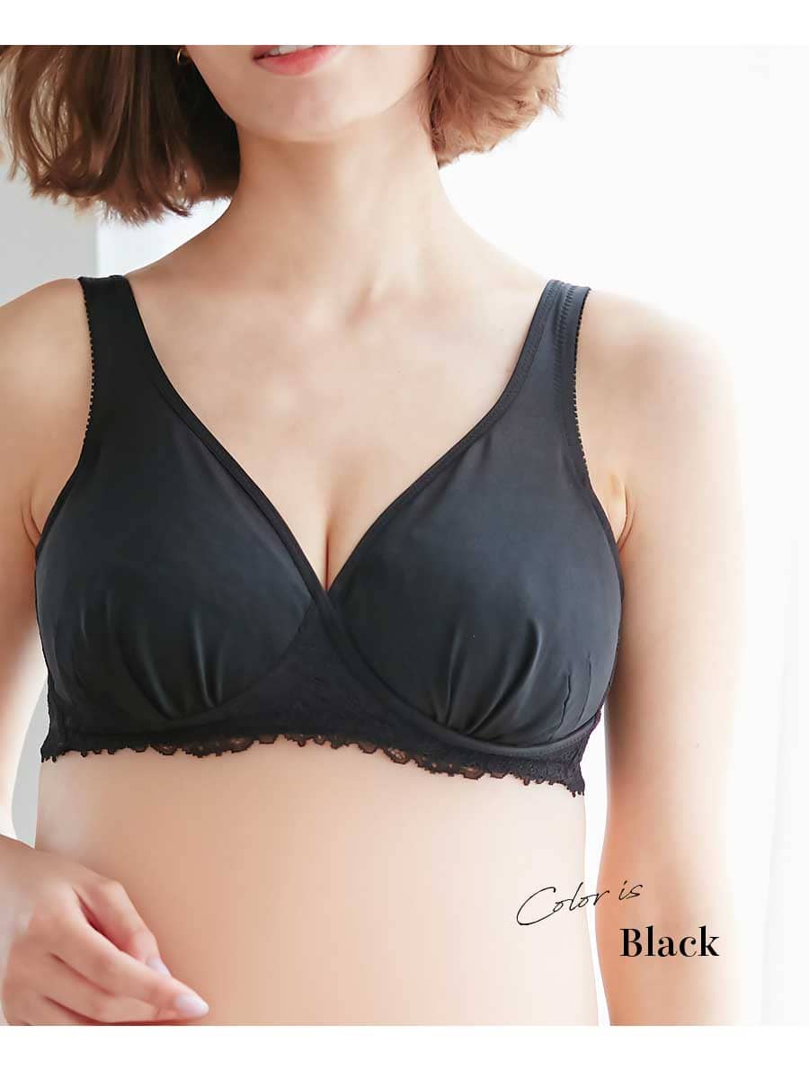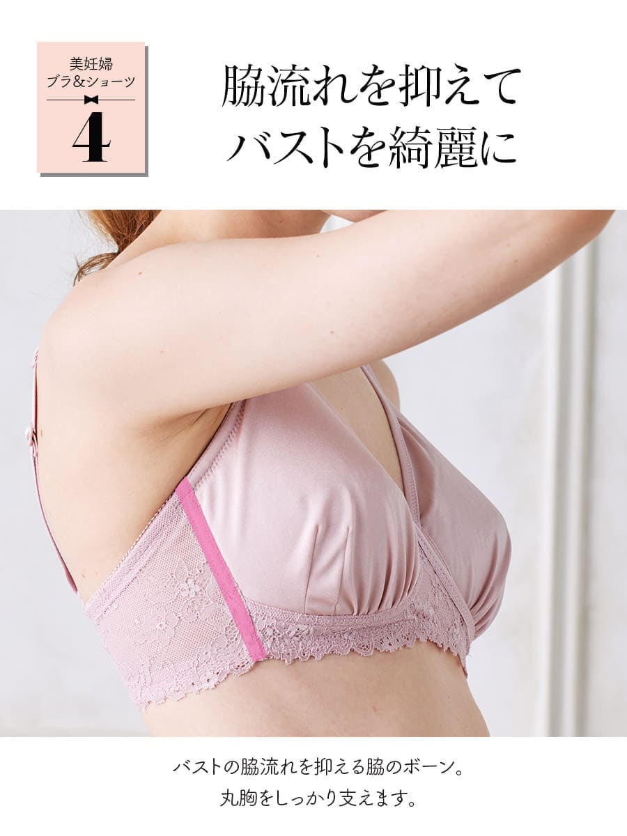 良く伸びる生地が胸上まで覆って妊娠中大きくなる胸をしっかり包み込み形をキープ。ノンワイヤー&ストレッチレースで変化の大きい産前産後のママがどの時期に使っても優しくフィット。