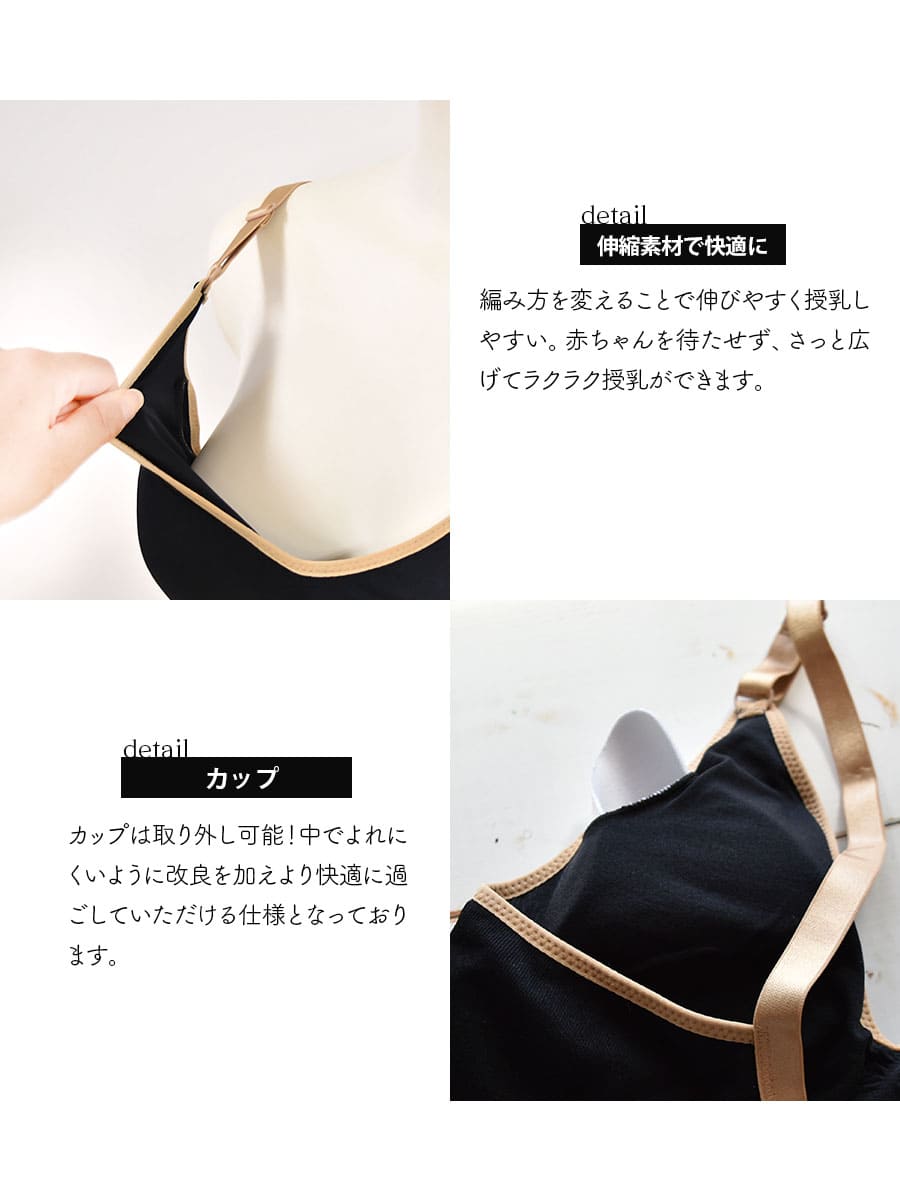 編み方の強さを段階で変えているので、ぐーんと伸びやすく授乳も簡単すぐできる!赤ちゃんもママも嬉しいスポーツブラタイプの授乳ブラです。