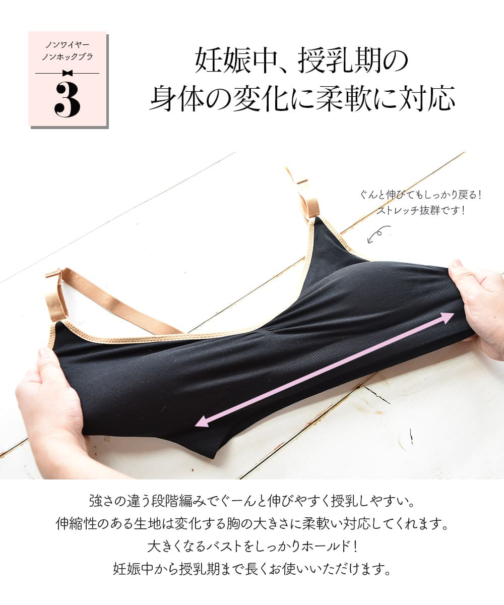 ホールドもしっかりとしているので、妊娠中、育児中の体型変化に対応!大きくなるバストでも安心です。