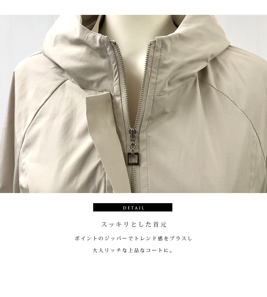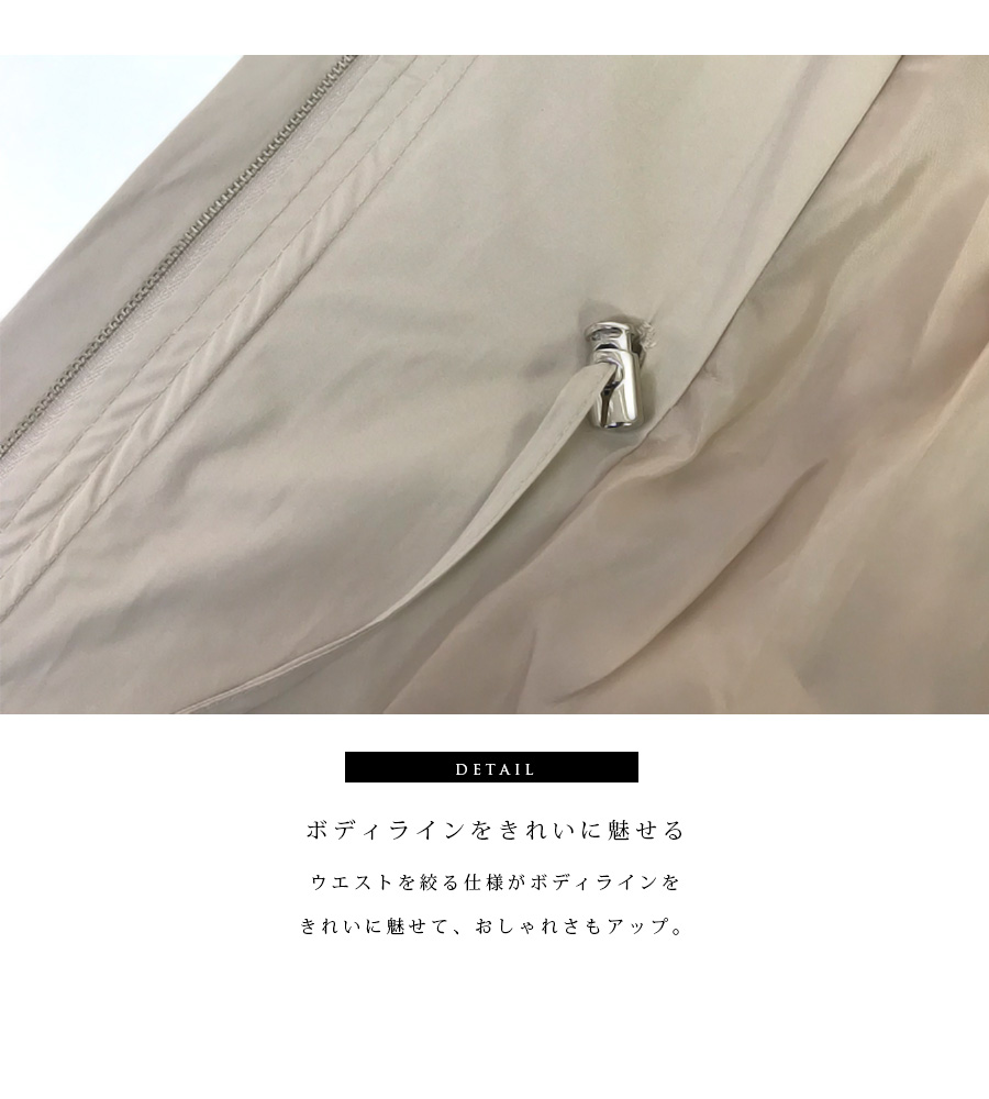 裏地付きでさらっと羽織りやすくウエストを絞る仕様がボディラインをきれいに魅せて、おしゃれさもアップ。