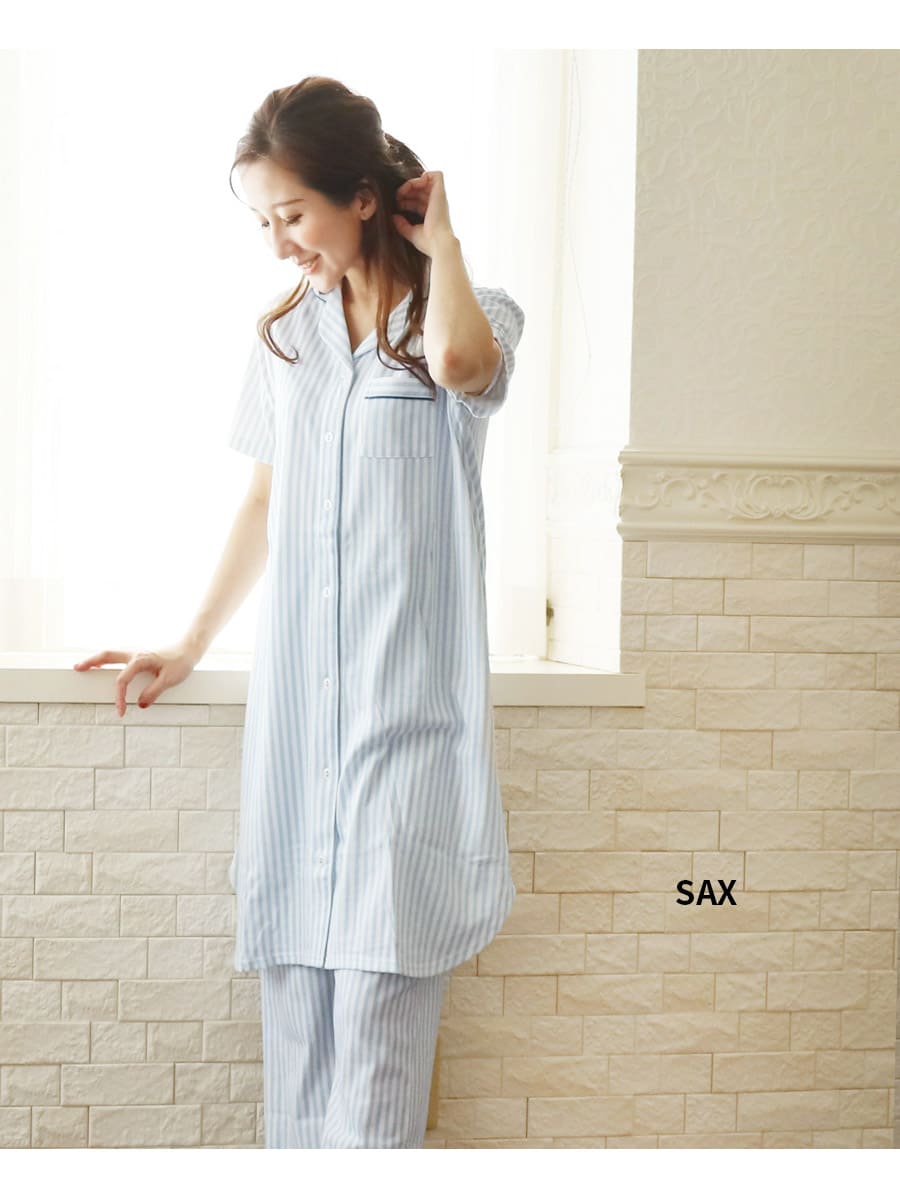商品カテゴリ:授乳服 マタニティ 妊娠 出産 産前産後 入院準備 出産準備 産院 前開き 掛け違い防止 パジャマ ママパジャマ 寝巻き 上下セット 2点セット ストライプ柄 メンズライク 半袖 綿 吸水速乾 入院準備 妊婦 妊婦服 マタニティー 春 夏 秋 冬 リラックス ルームウエア ママ ミルクティー ミルクティ Milk tea