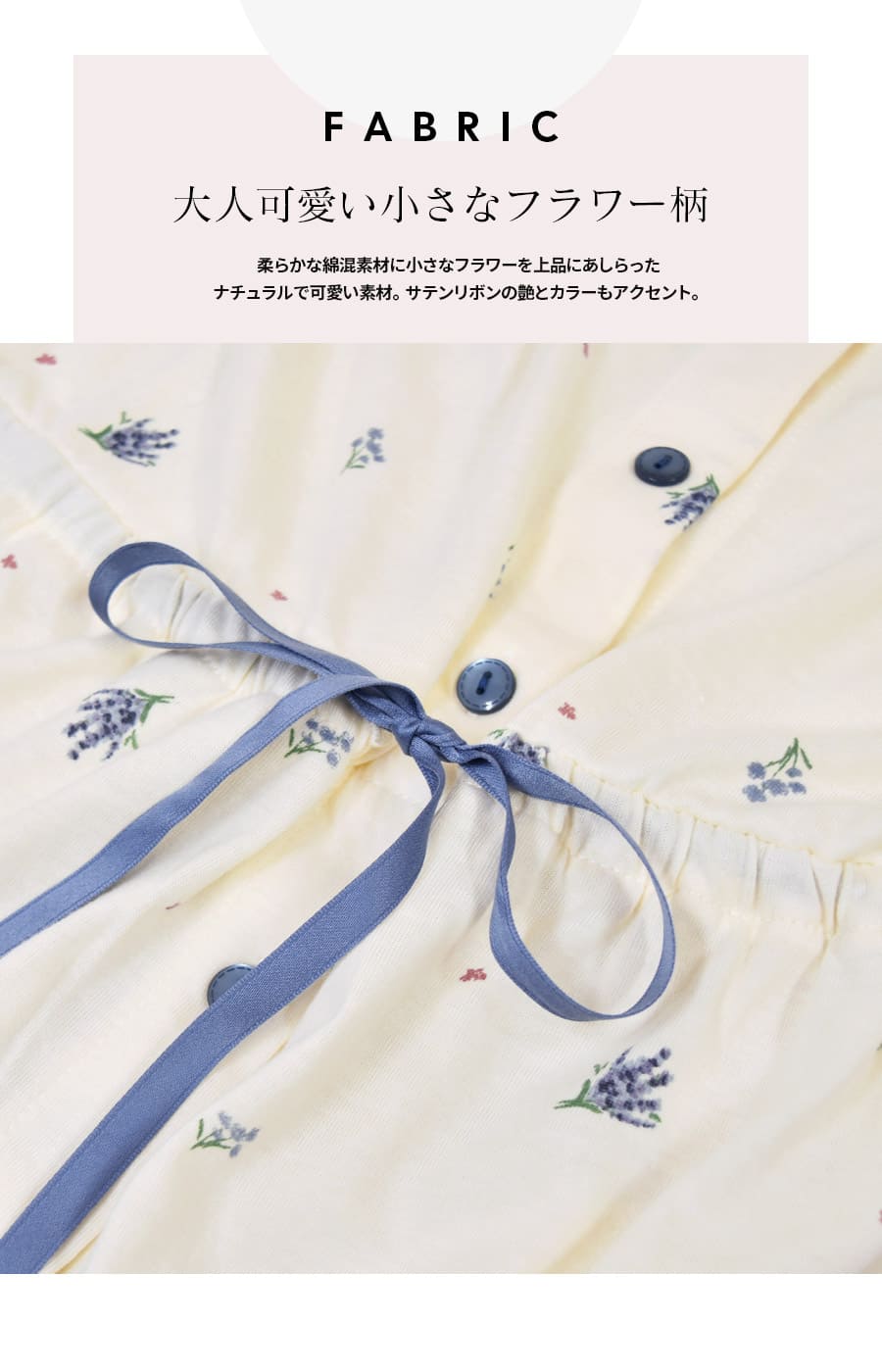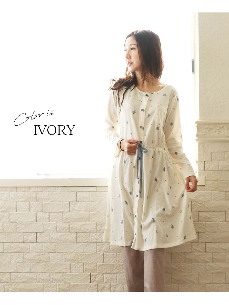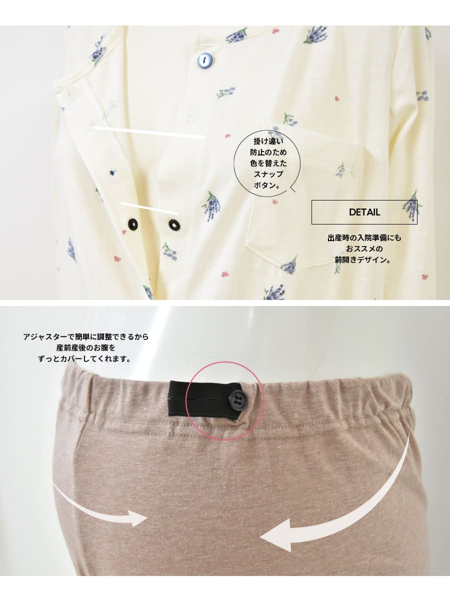 ・上品なフラワー柄で愛らしいデザイン。・ふんわりやわらかい綿混素材が、マタニティ期〜産後まで優しい着心地。