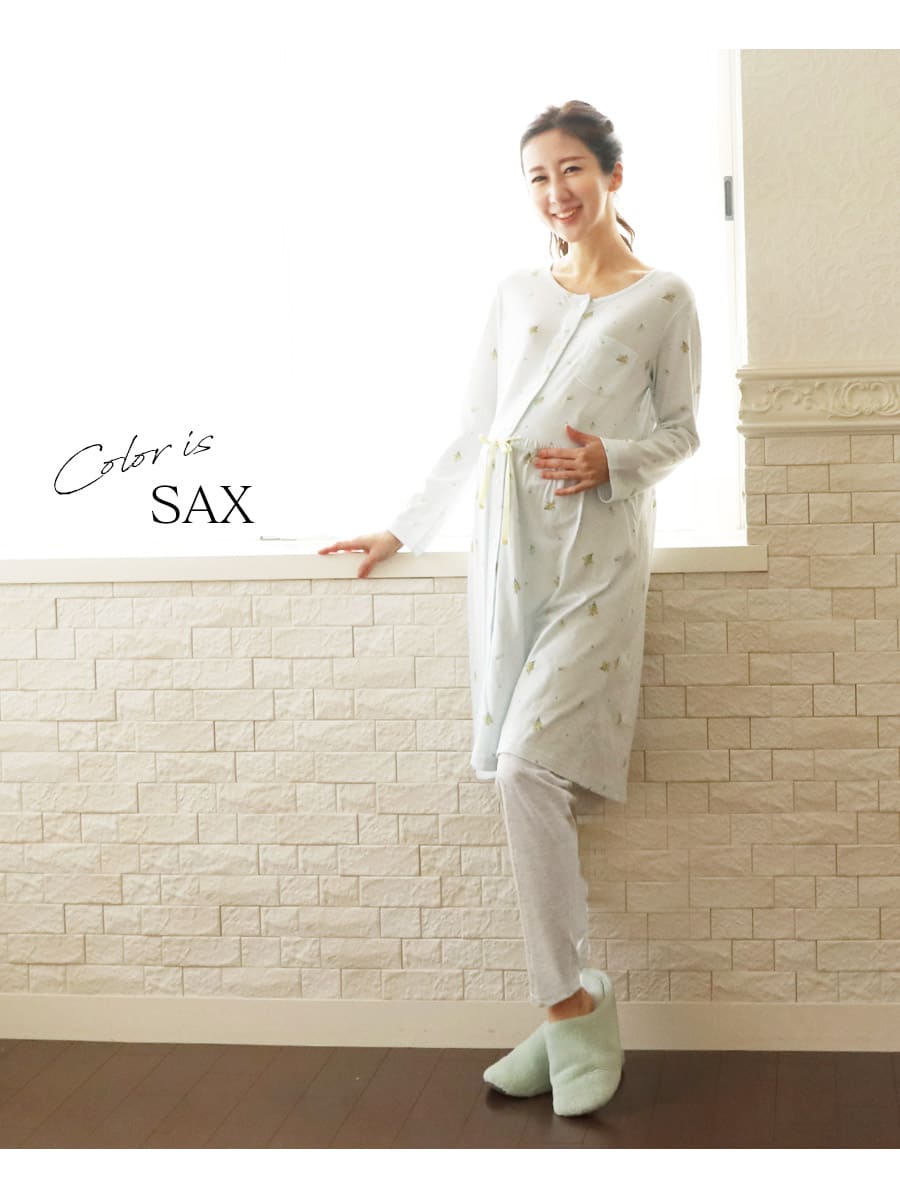 授乳口付きで子育てしやすい!柔らかで優しいカラーとデザインの小花柄ママパジャマセット。