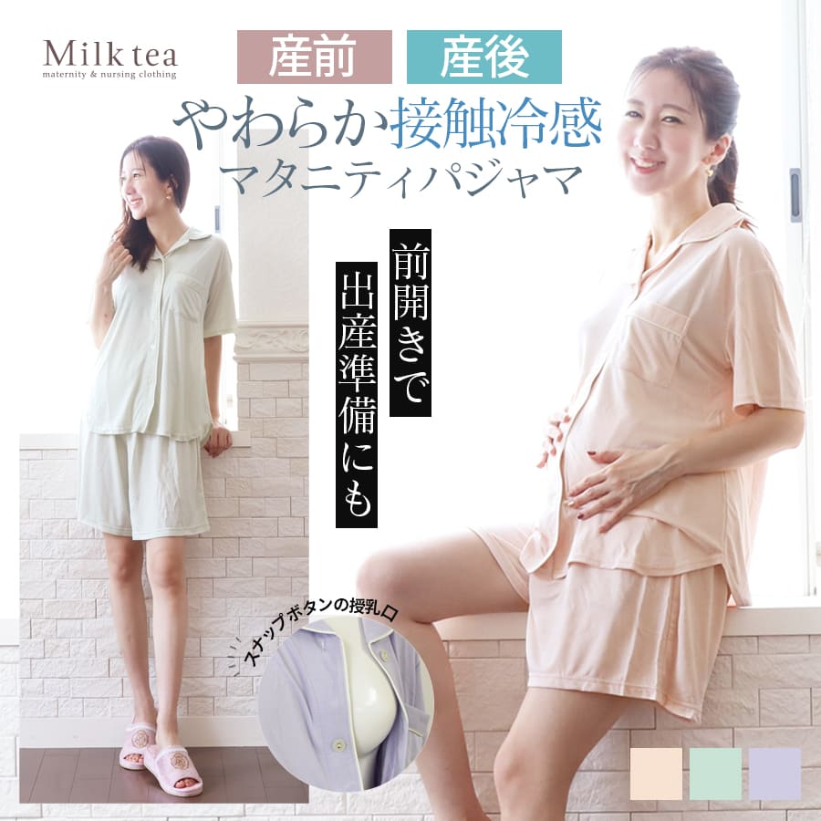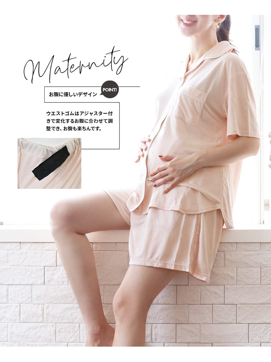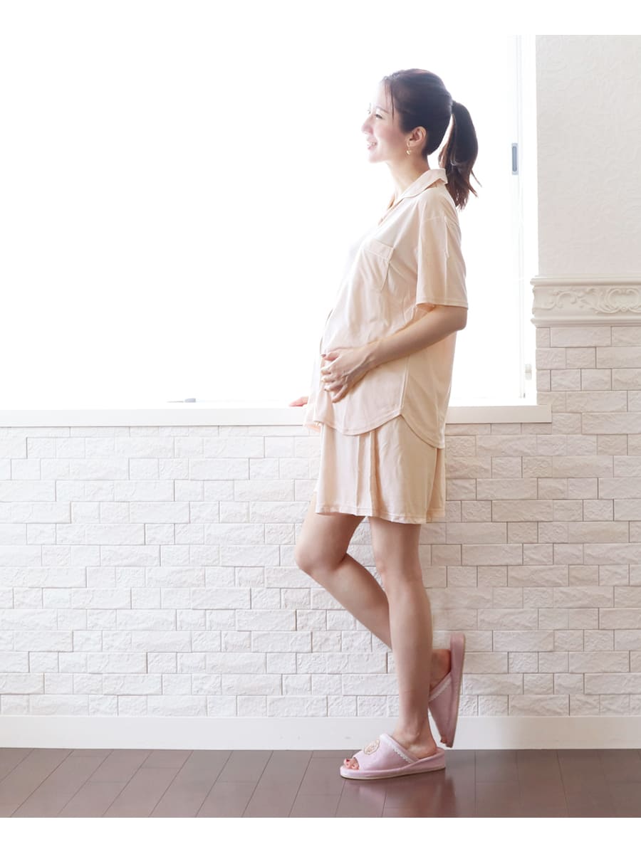 商品カテゴリ:授乳服 マタニティ 妊娠 出産 産前産後 マタニティウエア マタニティファッション 入院準備 出産準備 産院 パジャマ ママパジャマ 寝巻き 上下セット 2点セット レーヨン 半袖 ショートパンツ 半ズボン 妊婦 妊婦服 マタニティー 春 夏 秋 リラックス ルームウエア ママ ミルクティー ミルクティ Milk tea