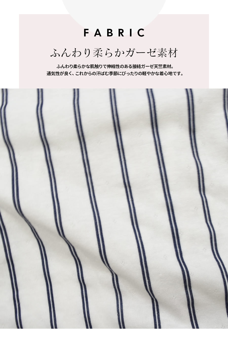 ・柔らかな肌触りで伸縮性のある接結ガーゼ天竺素材を使用。