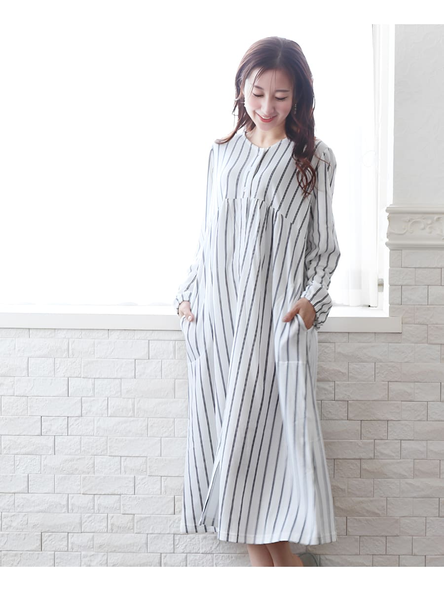 爽やかな印象のナチュラルなストライプ柄が入った上品で大人可愛いネグリジェ。