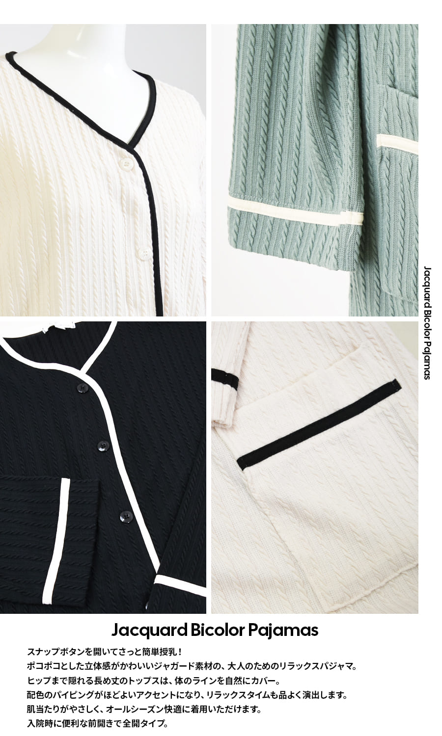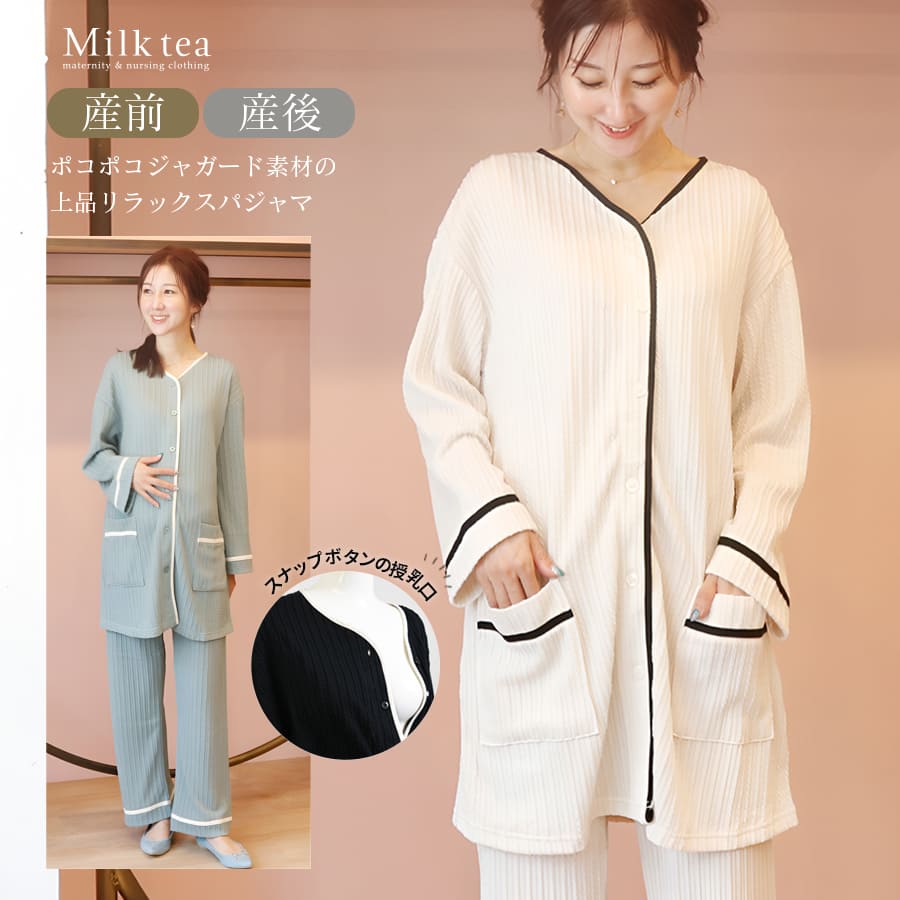 ポコポコとした立体感がかわいいジャガード素材の、大人のためのリラックスパジャマです。