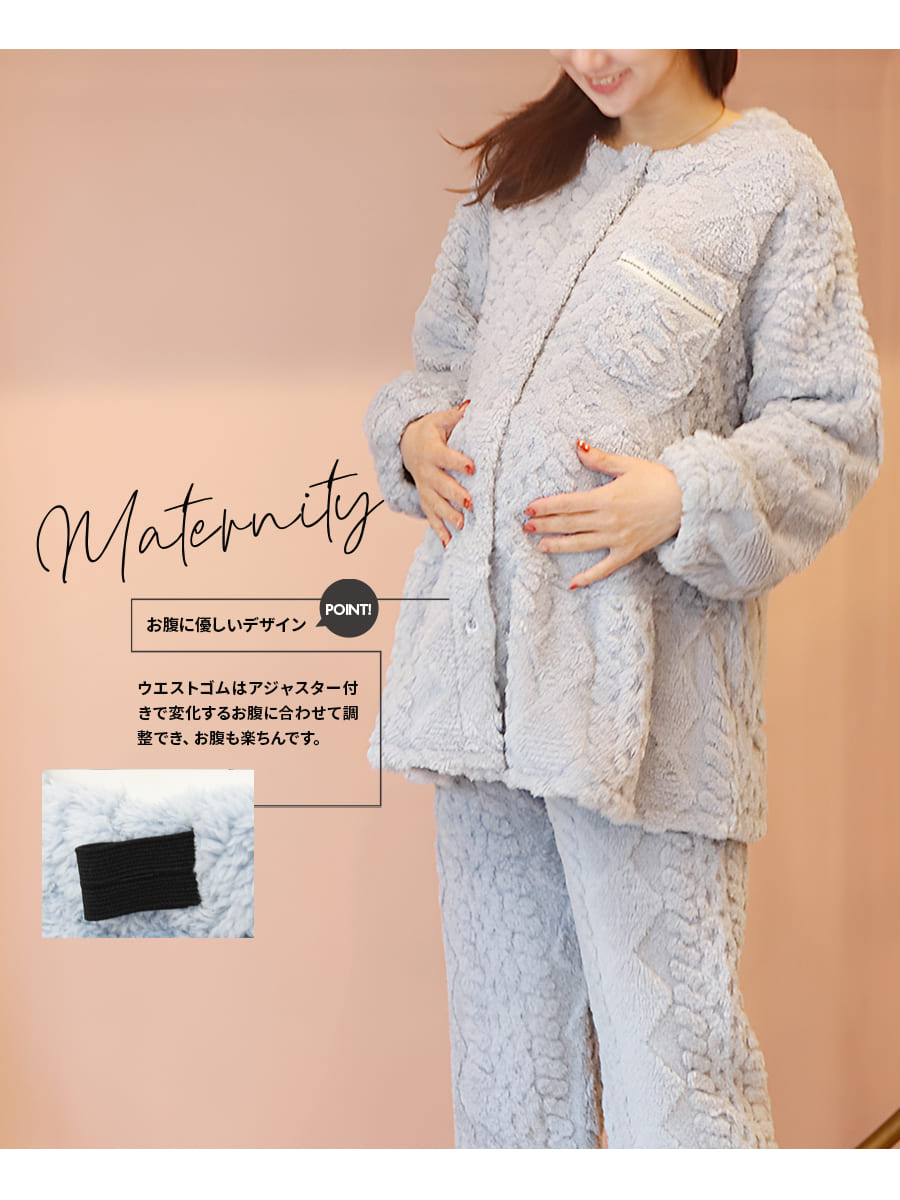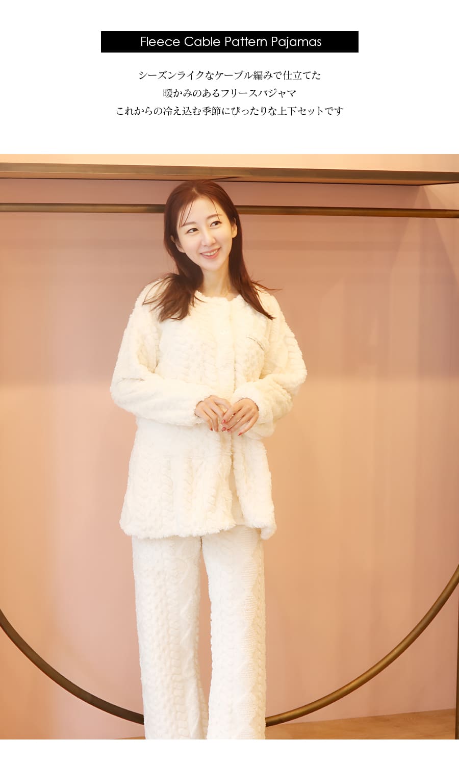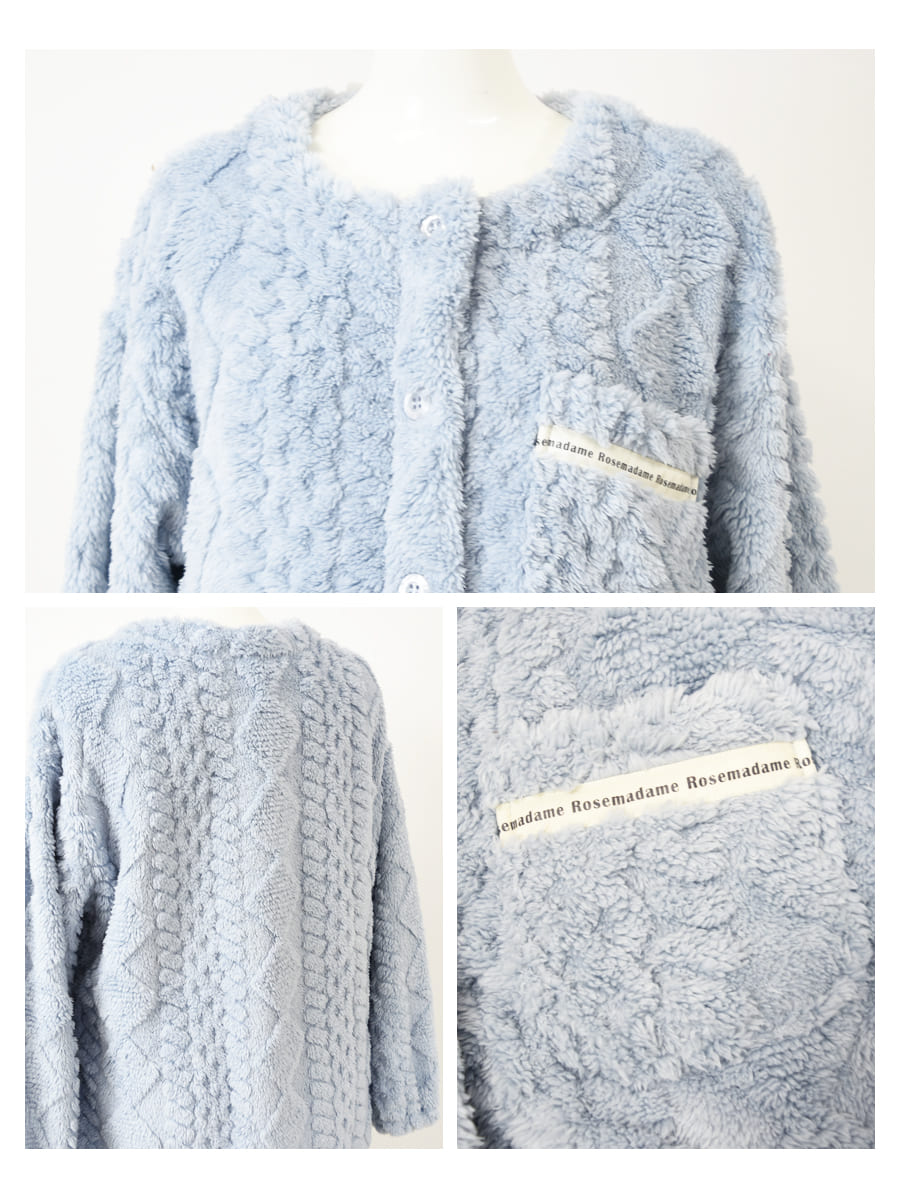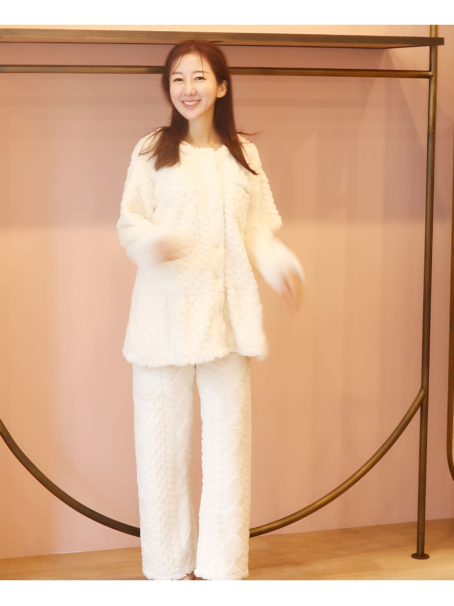 ニュアンスのあるケーブル編みが魅力のフリースパジャマ上下セットです。