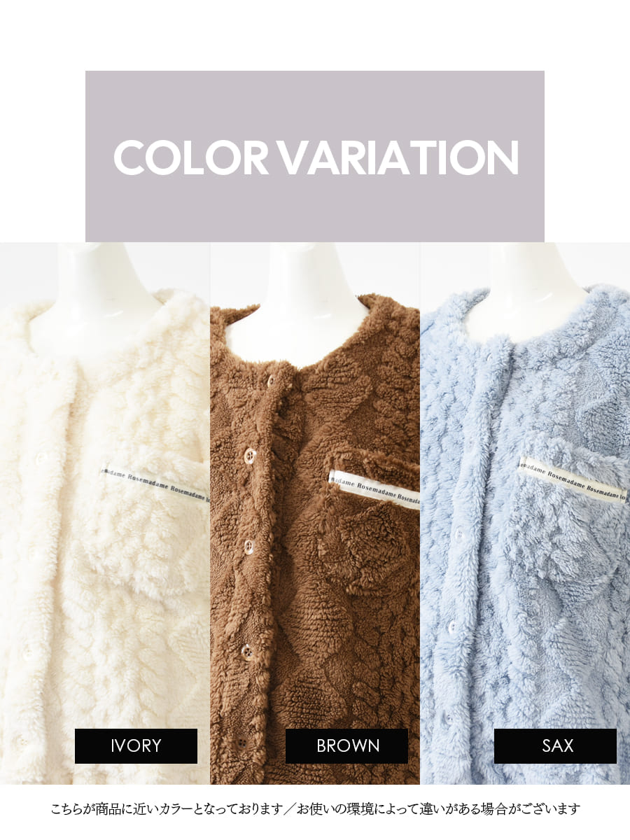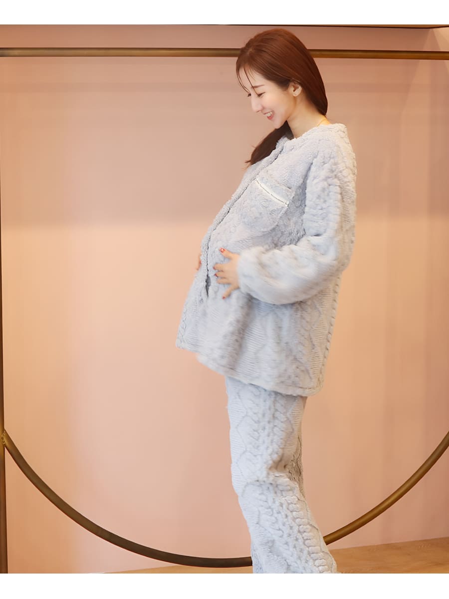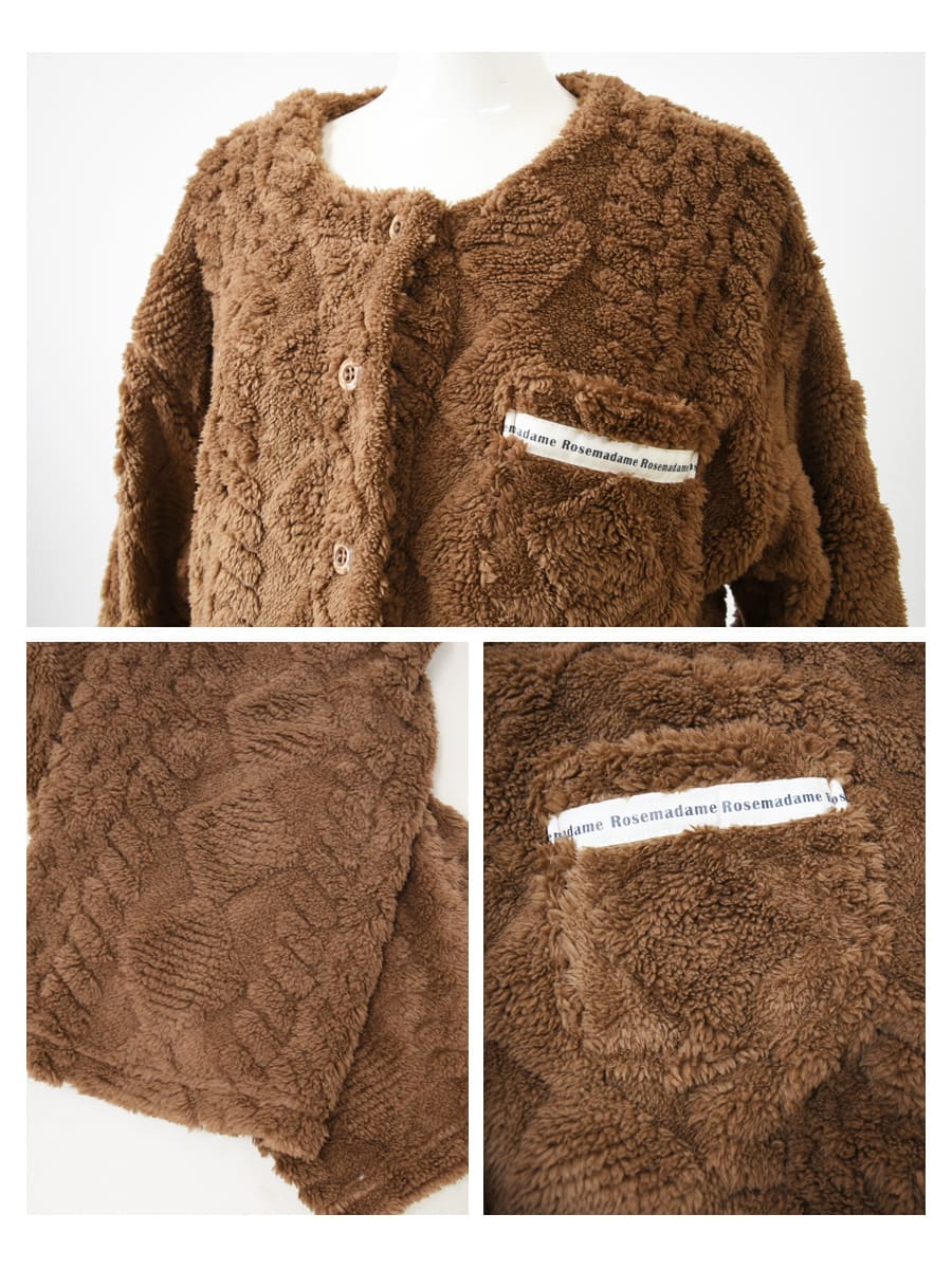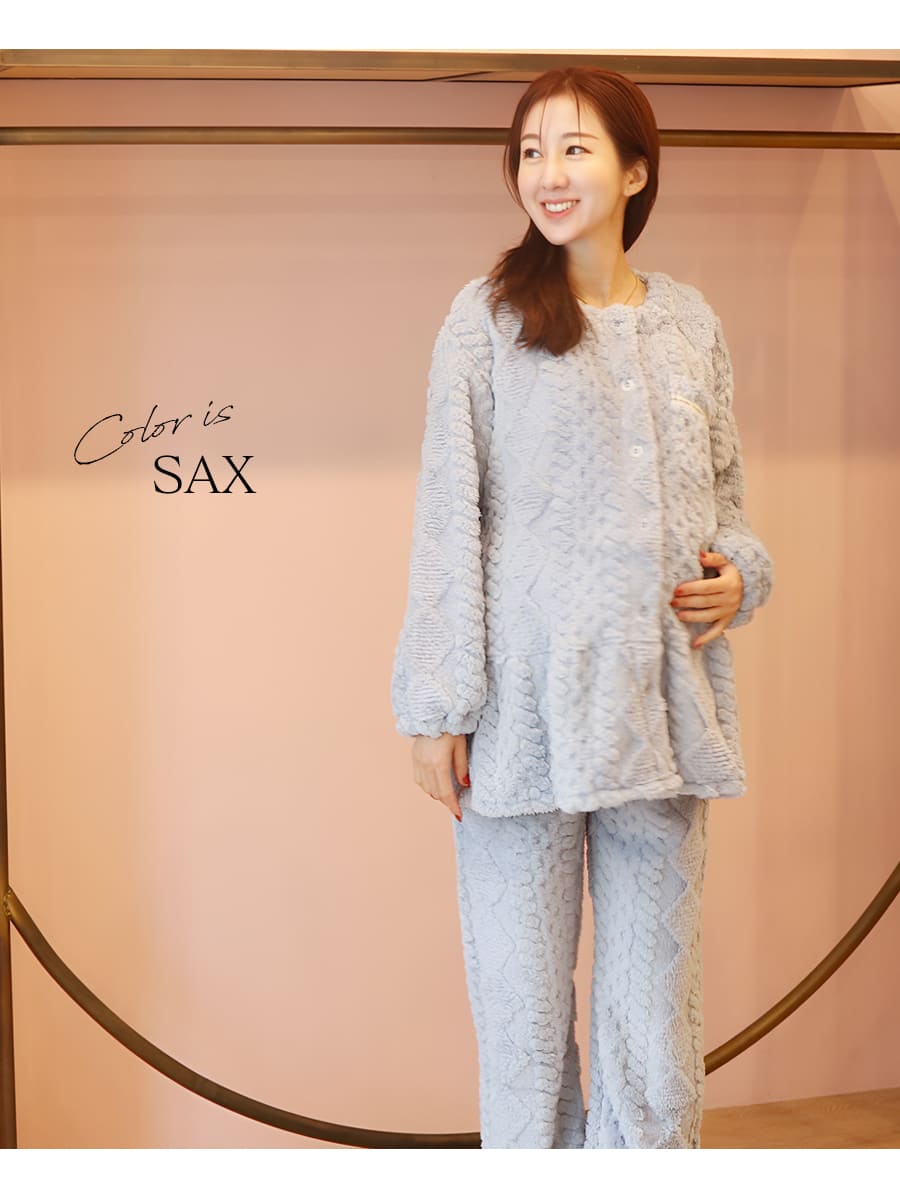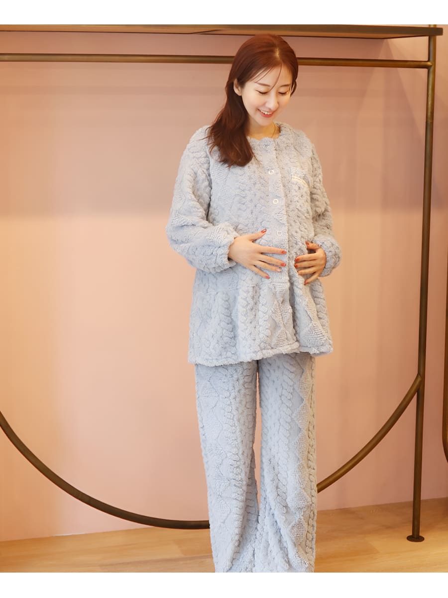 ニュアンスのあるケーブル編みが魅力のフリースパジャマ上下セットです。