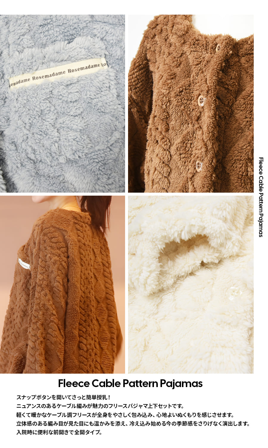 ・シーズンライクなケーブル編みで仕立てた暖かみのあるフリースパジャマ。