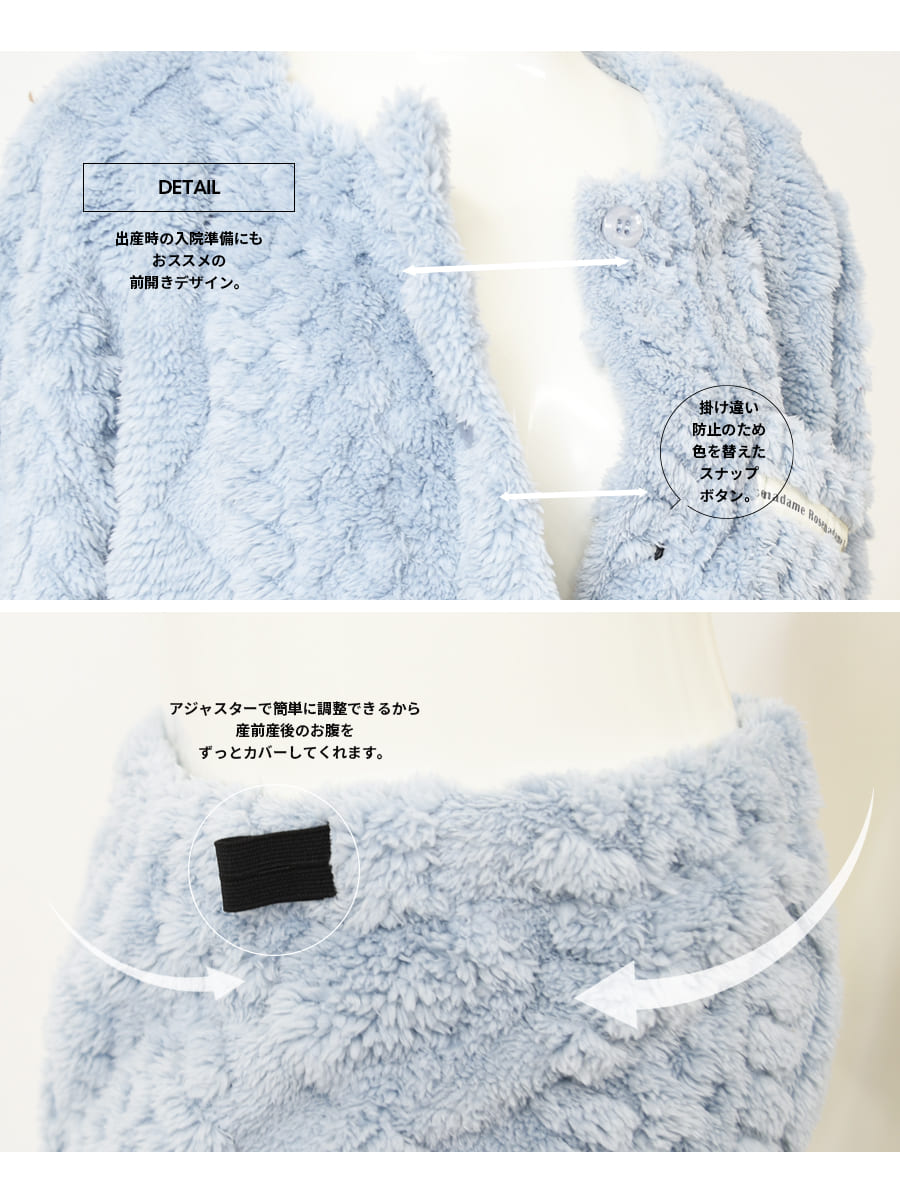 ・パンツはゴムアジャスター付きでお腹部分が調整できるので、妊娠中から産後まで、変化する体型に合わせて優しい着心地で楽ちんです。