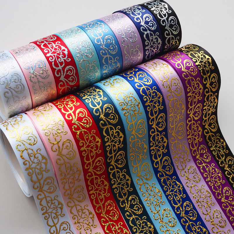 【25mm幅 1m】ビッグハート サテンリボン シルバー ゴールド ホログラム 箔押し