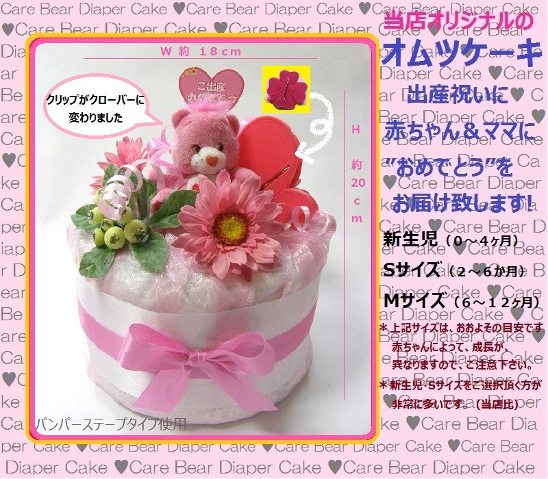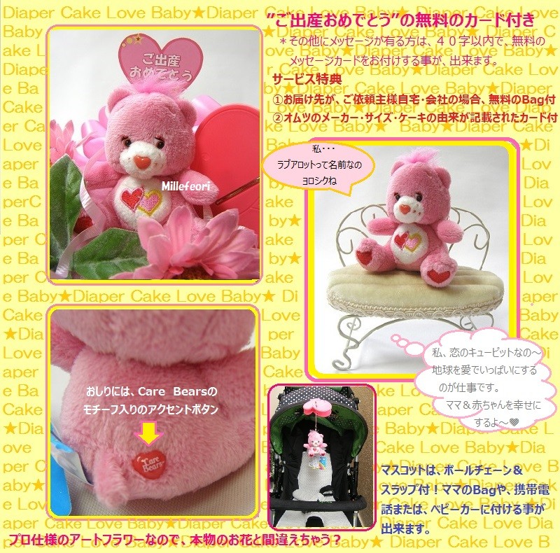 おむつケーキ送料無料 出産祝いオムツケーキ ケアベアのラブアロットベアぬいぐるみ付き(女の子用)おむつケーキ(Diaper cake)