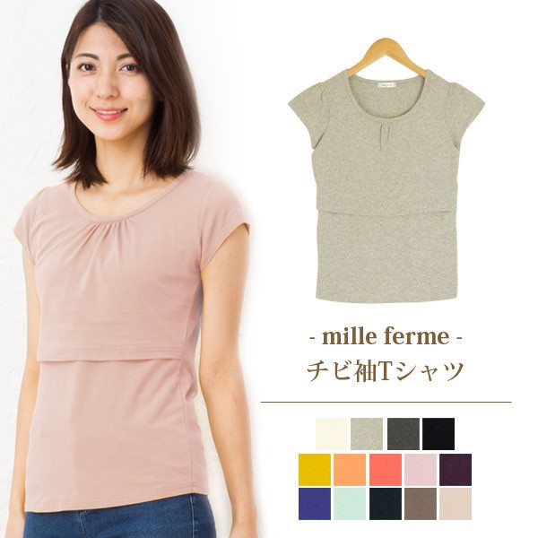 授乳服 チビ袖パフスリーブTシャツ 半袖 母乳育児 可愛い 安い 産後授乳服 授乳服とマタニティのミルフェルム