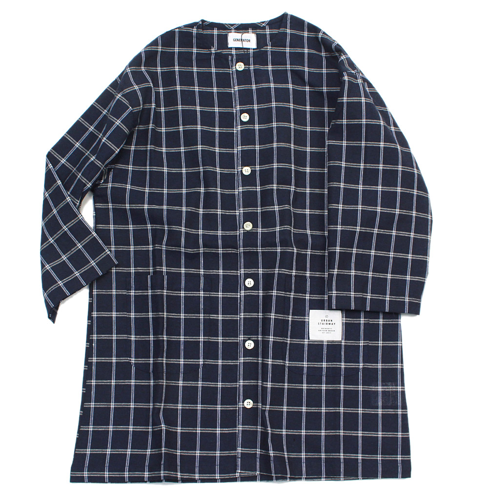 “ジェネレーター”のノーカラーCHECKシャツコート