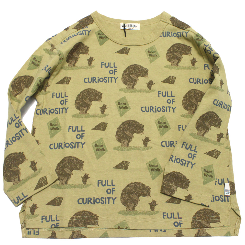 セール 「30%OFF」 長袖Tシャツ "makeyourday メイクユアデイ" くまの親子Tシャツ イエロー(YE)