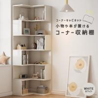本棚 コーナー オープンラック 収納キャビネット 収納棚 コーナーキャビネット 無垢材 シェルフ 木製 (ホワイト / ブラック / ブラウン / ライトブラウン)
