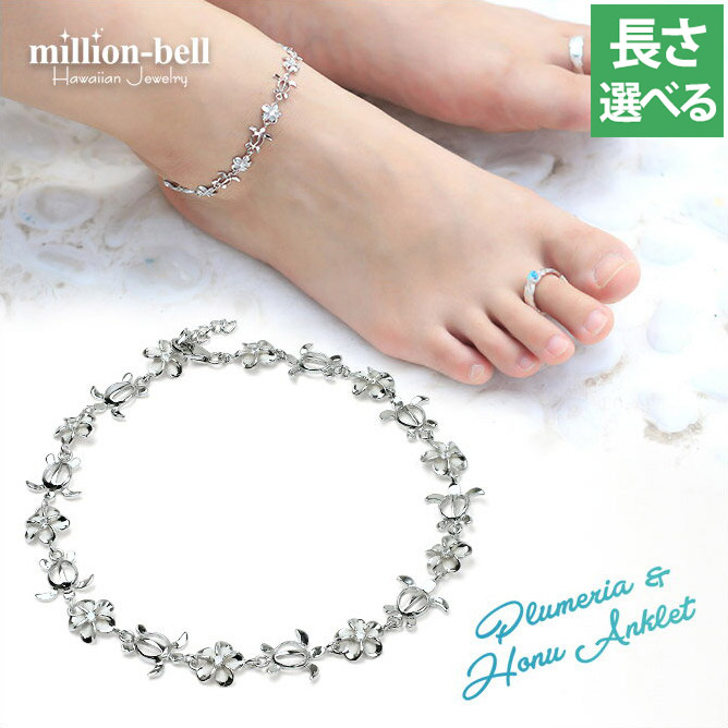 ハワイアンジュエリー アンクレット メンズ レディース シルバー925 プルメリア ホヌ(海亀) ハワジュ