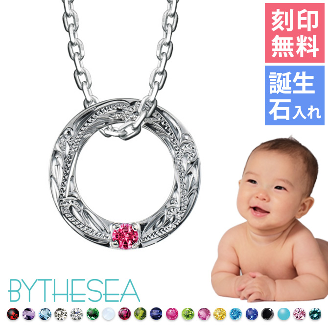 ベビーリング ネックレス ハワイアンジュエリー 刻印無料 誕生石選べる 出産祝い シルバー925 ブランド 男の子 女の子 記念品
