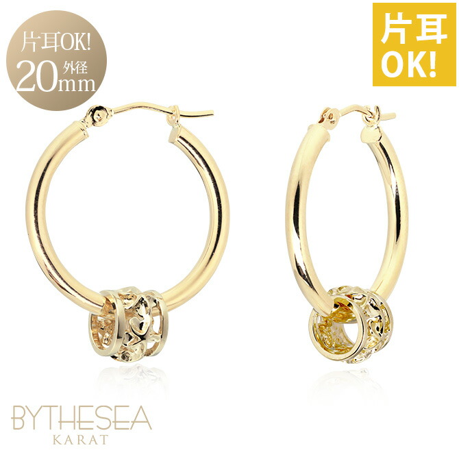 ハワイアンジュエリー ピアス レディース K14ゴールド チャーム フープ リング 外径20mm ポスト 40代 50代 30代 20代