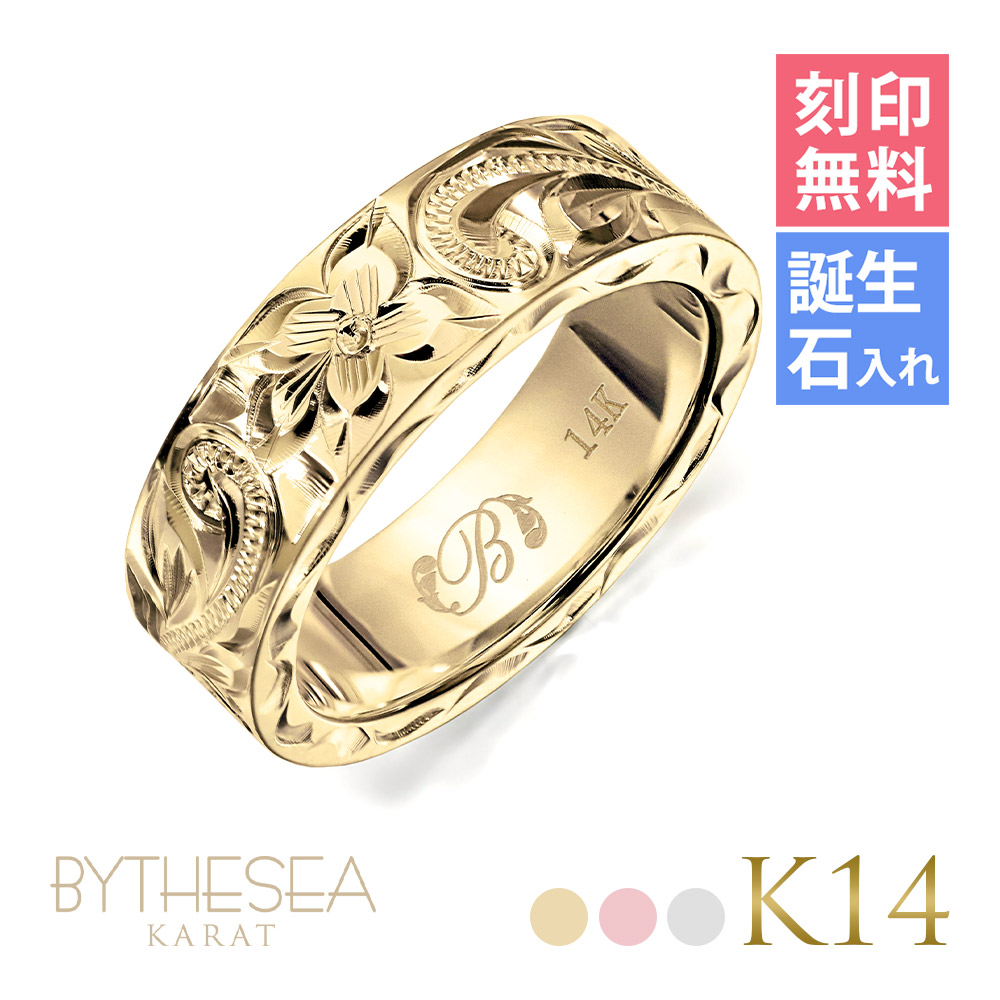 ハワイアンジュエリー リング 指輪 刻印無料 誕生石入れ可 メンズ レディース K14ゴールド 6号〜29号 ブランド 40代 50代 30代 20代