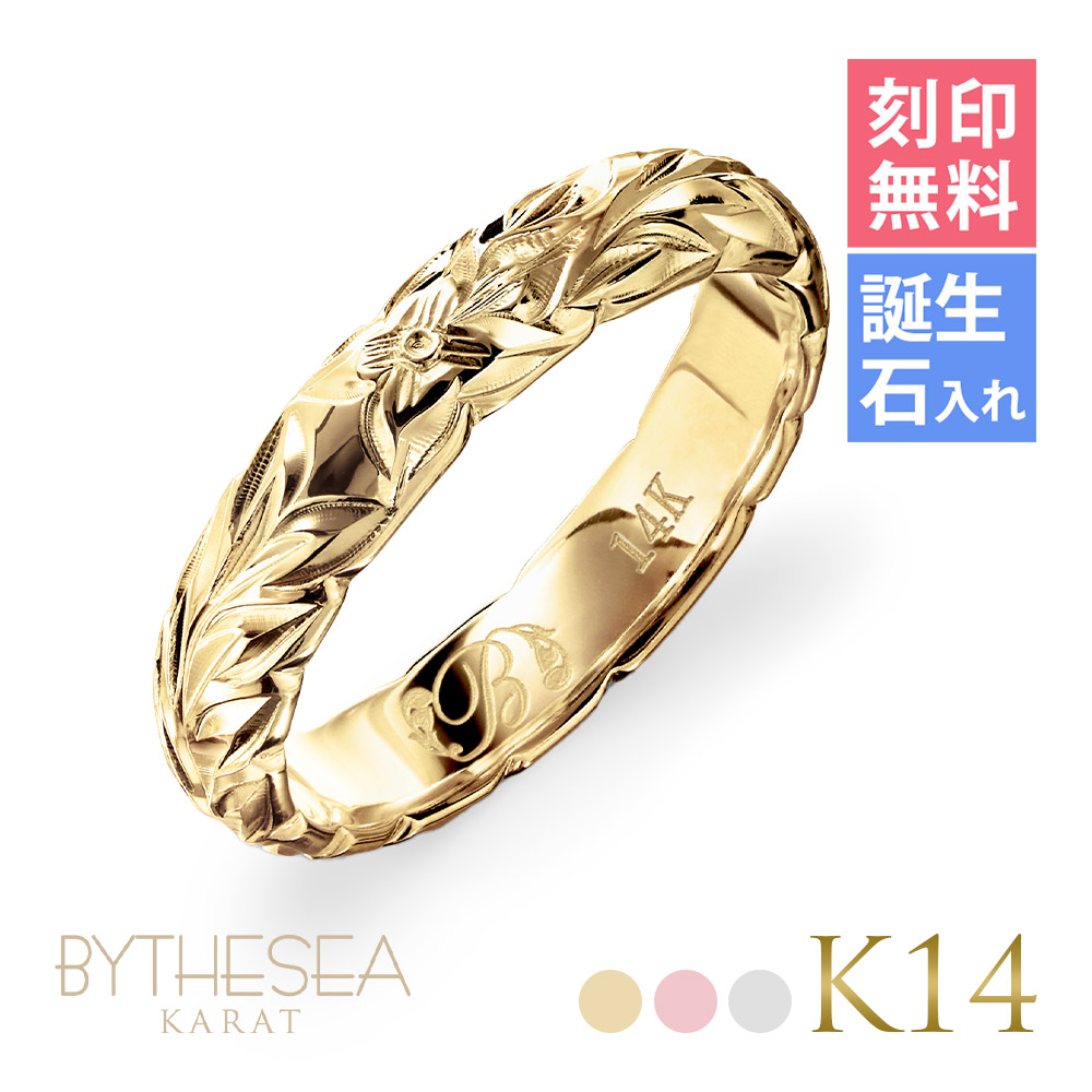ハワイアンジュエリー リング 指輪 刻印無料 誕生石入れ可 メンズ レディース K14ゴールド 1号〜29号 ピンキー ブランド 40代 50代 30代 20代