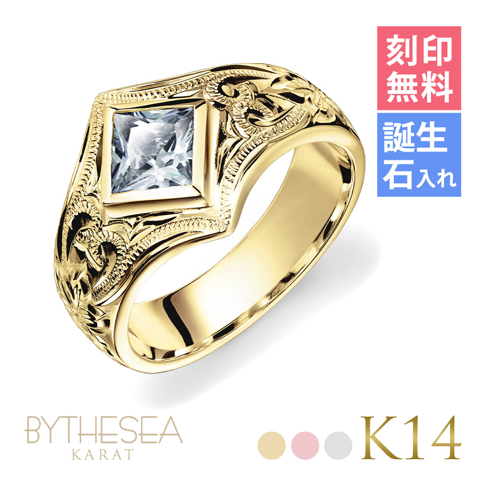 ハワイアンジュエリー リング 指輪 刻印無料 誕生石入れ可 スクエアジルコニア メンズ レディース K14ゴールド 6号〜29号 ブランド 40代 50代 30代 20代