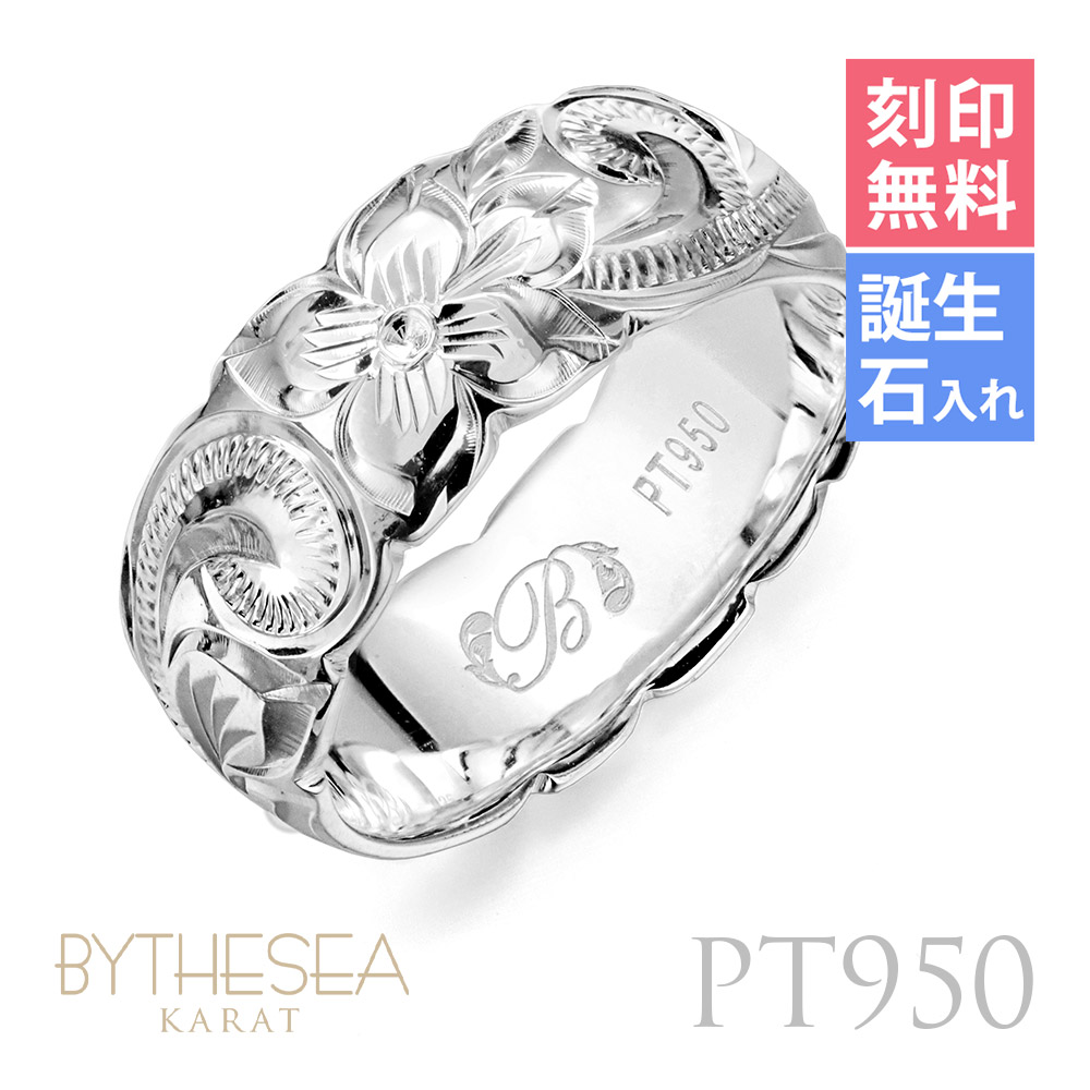 プラチナ リング ハワイアンジュエリー 刻印無料 誕生石入れ可 6号〜29号 太め プラチナ950 PT950 白金 ピンキーリング 大きいサイズ