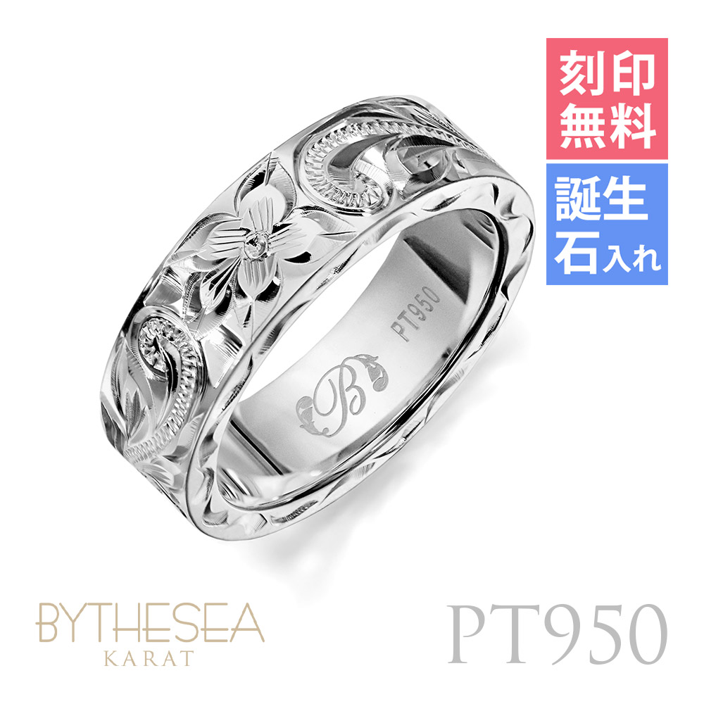 プラチナ リング ハワイアンジュエリー 刻印無料 誕生石入れ可 6号〜29号 太め プラチナ950 PT950 白金 大きいサイズ 小さいサイズ メンズ レディース