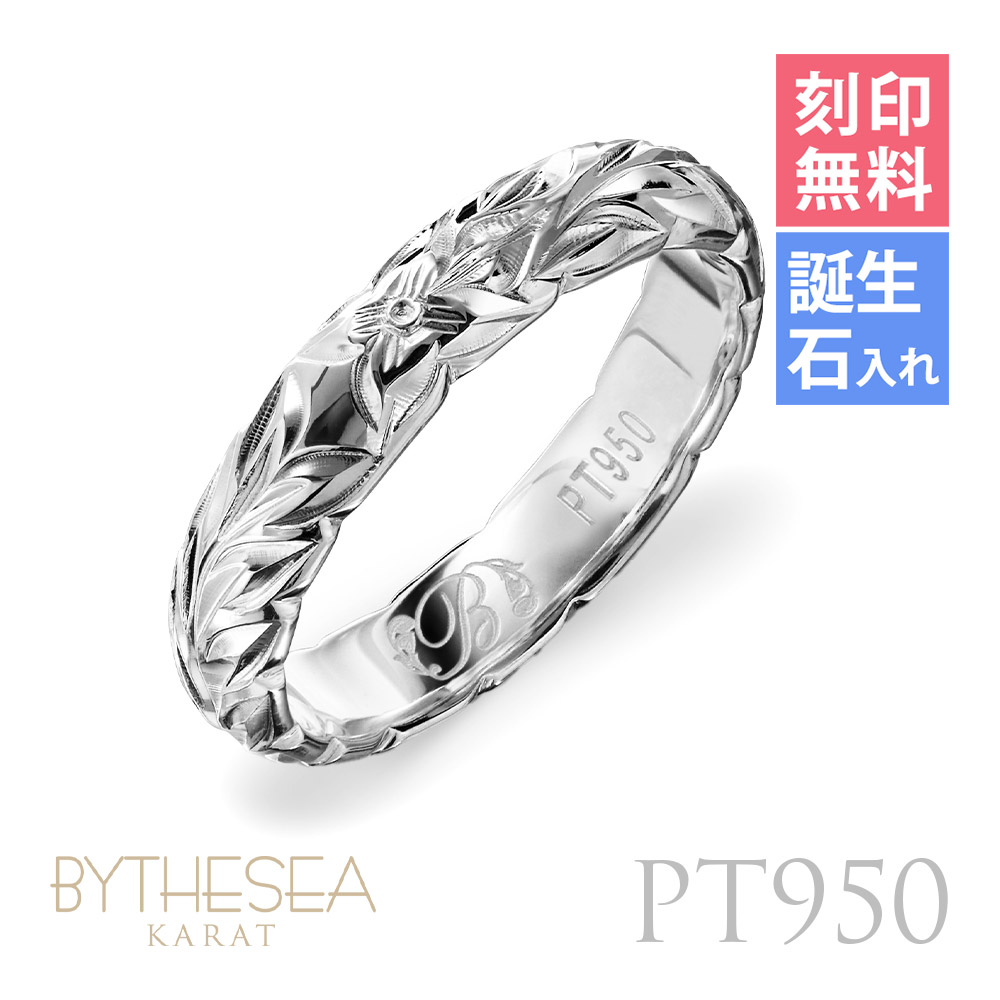 プラチナ リング ハワイアンジュエリー 刻印無料 誕生石入れ可 1号〜29号 マイレリーフ プラチナ950 PT950 白金 ピンキーリング 大きいサイズ 小さいサイズ