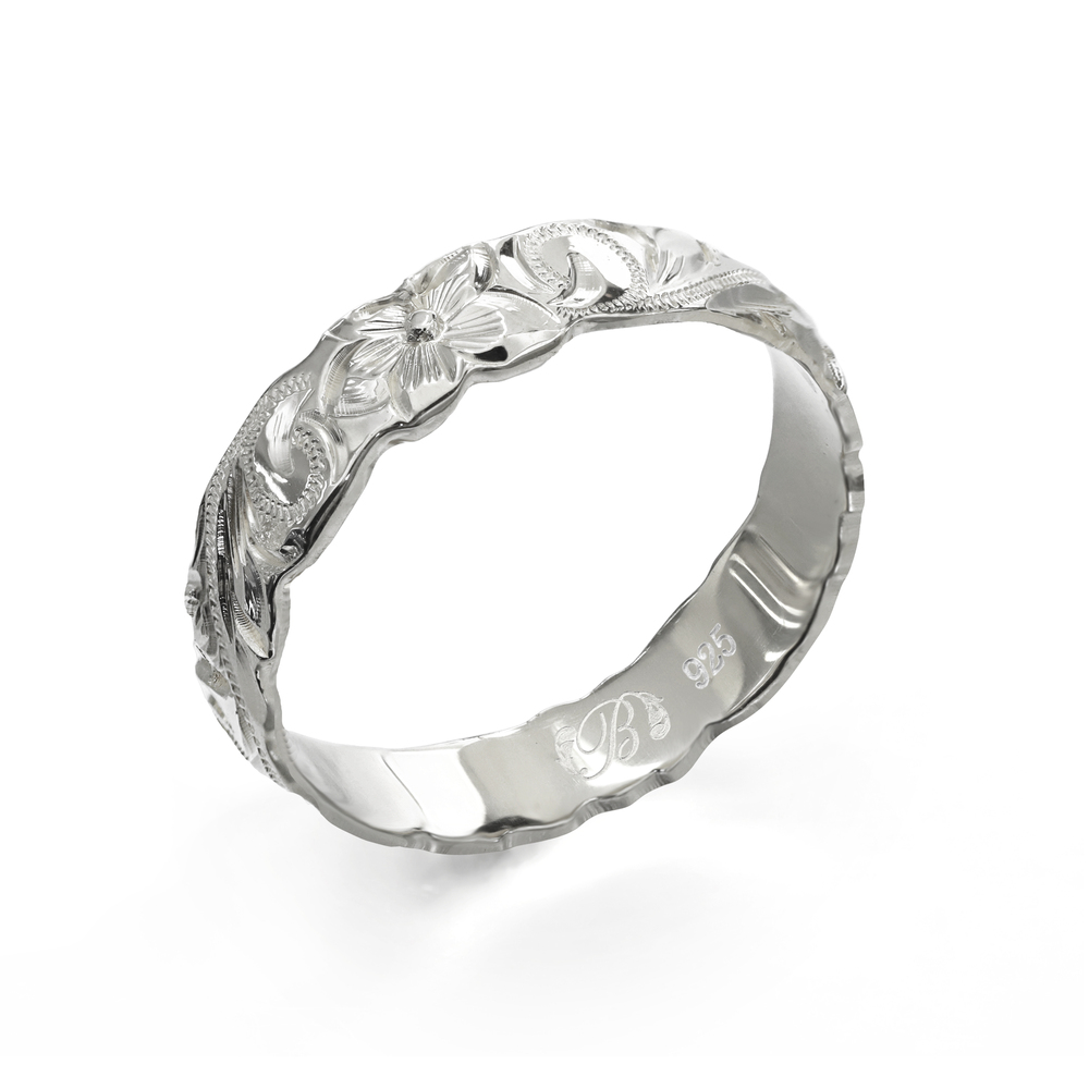 ハワイアンジュエリー オーダーメイド リング 指輪 リング 幅4mm 厚み1.5mm バレル シルバー925 スクロール カットアウト SB4A-A15