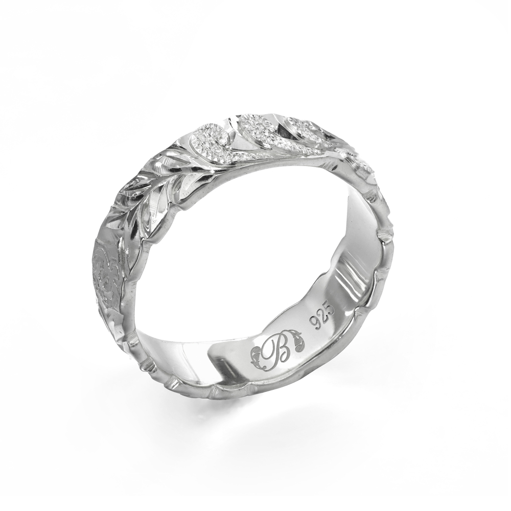 ハワイアンジュエリー オーダーメイド リング 指輪 リング 幅4mm 厚み1.5mm バレル シルバー925 マイレ&カレイキニ カットアウト SB4C-A15