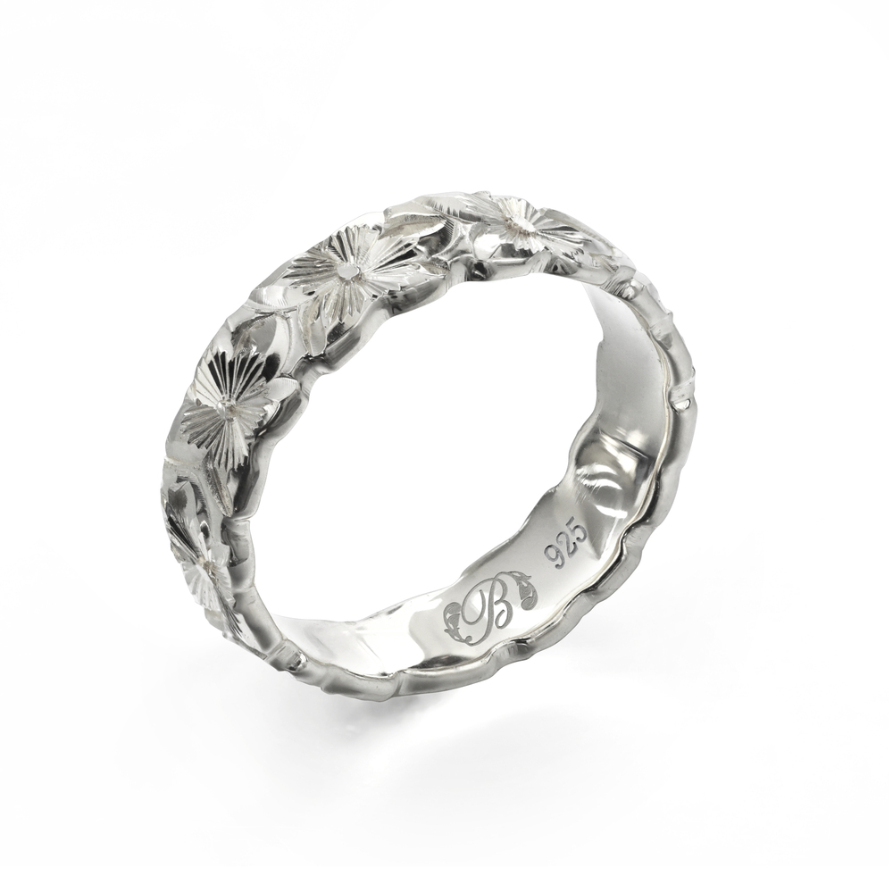 ハワイアンジュエリー オーダーメイド リング 指輪 リング 幅4mm 厚み1.5mm バレル シルバー925 プルメリア カットアウト SB4D-A15