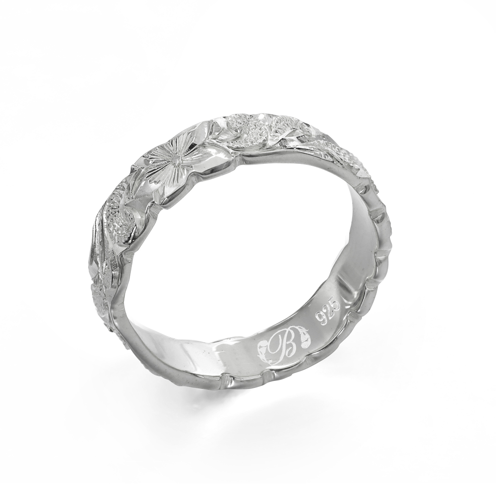 ハワイアンジュエリー オーダーメイド リング 指輪 リング 幅4mm 厚み1.5mm バレル シルバー925 カレイキニ カットアウト SB4E-A15
