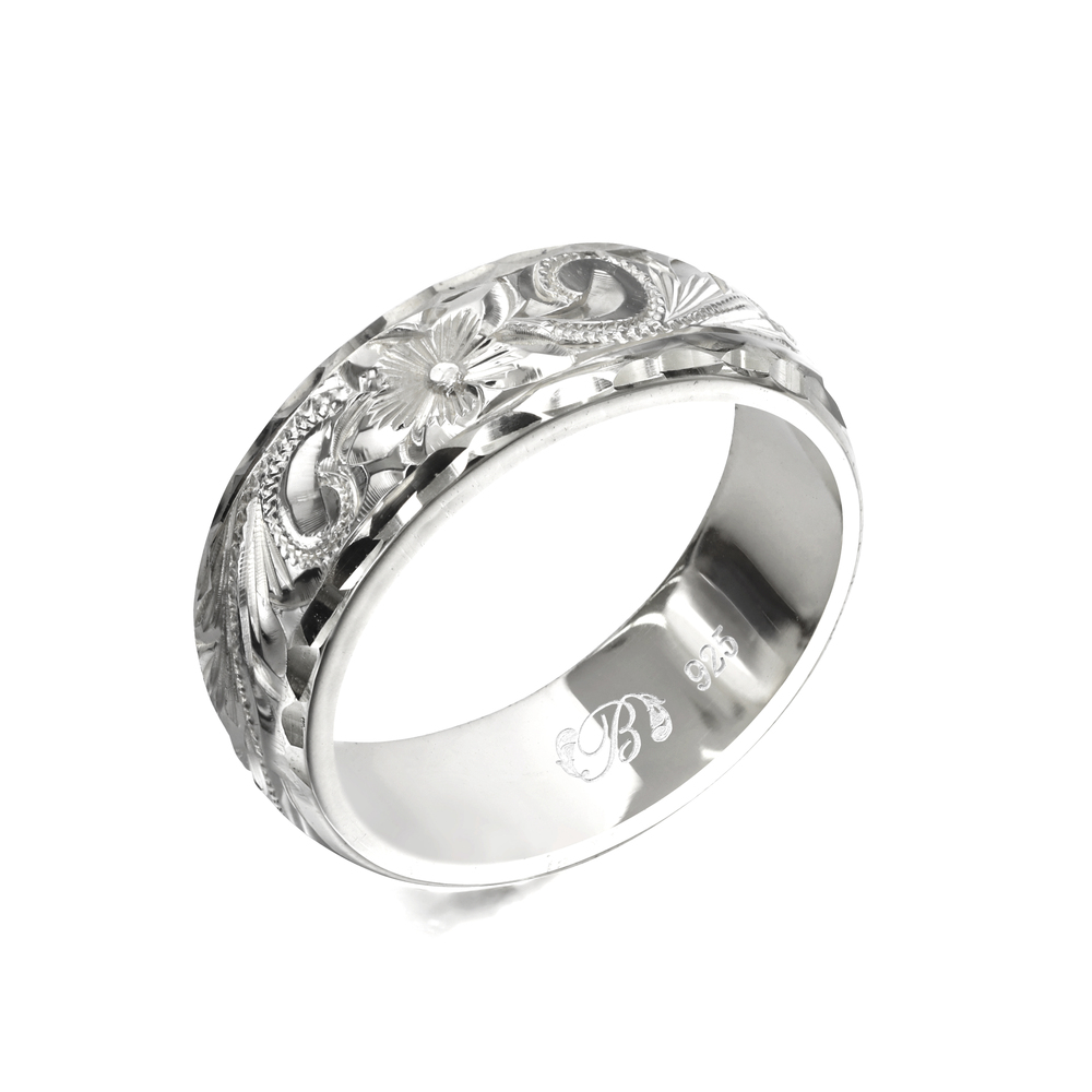 ハワイアンジュエリー オーダーメイド リング 指輪 リング 幅6mm 厚み2mm バレル シルバー925 スクロール ダイヤモンドカット SB6A-C20