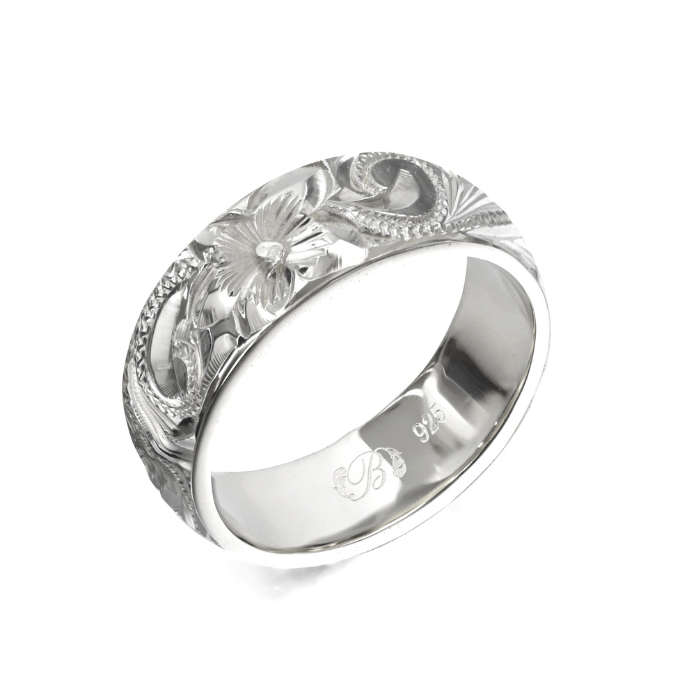 ハワイアンジュエリー オーダーメイド リング 指輪 リング 幅6mm 厚み2mm バレル シルバー925 スクロール ノーエッジ SB6A-E20