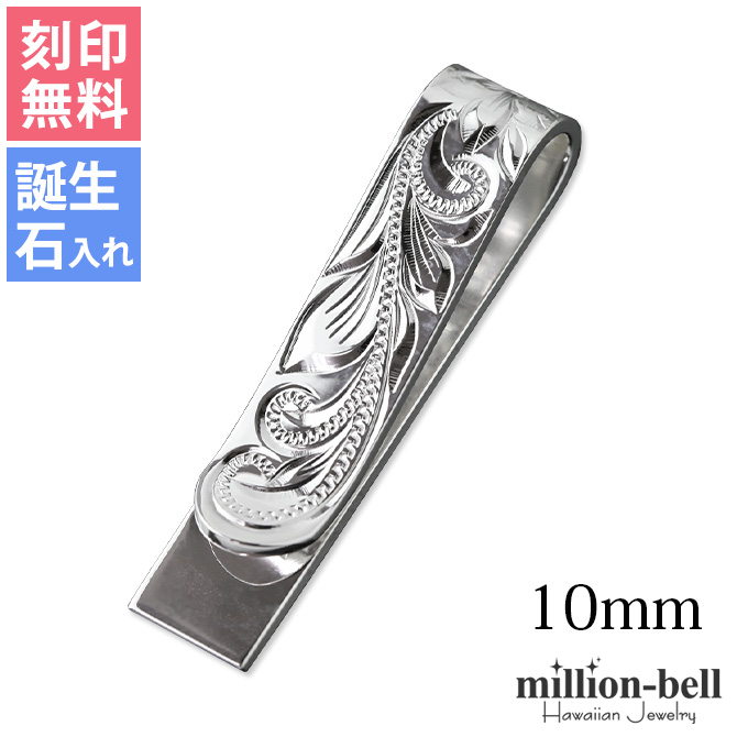 マネークリップ 刻印無料 名入れ 誕生石入れ可 シルバー925 ハワイアン彫り スクロール 幅10mm お札カードはさみ 40代 50代 30代 20代