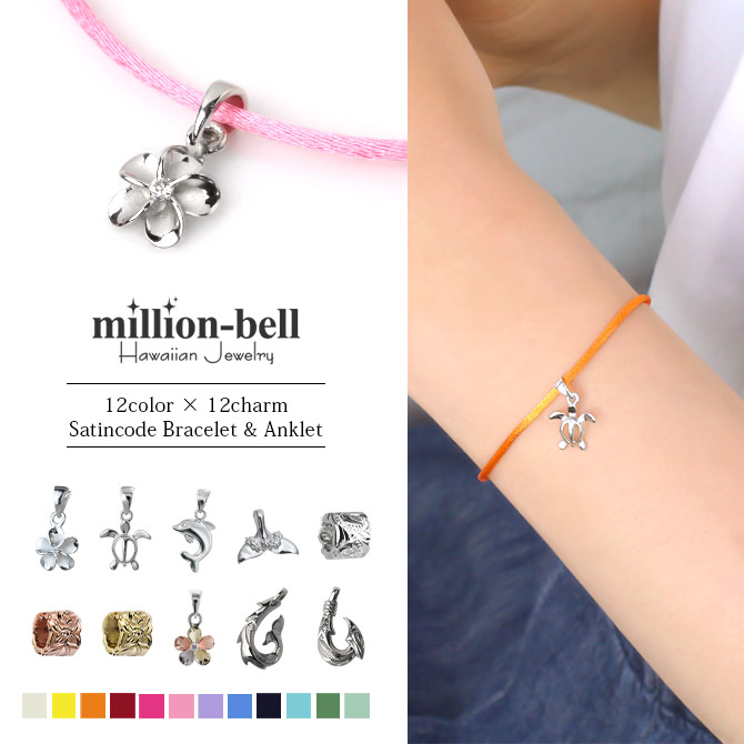 ハワイアンジュエリー ブレスレット アンクレット メンズ レディース シルバー925 選べるチャーム サテンコード 選べるカラー ハワジュ 40代 50代 30代 20代