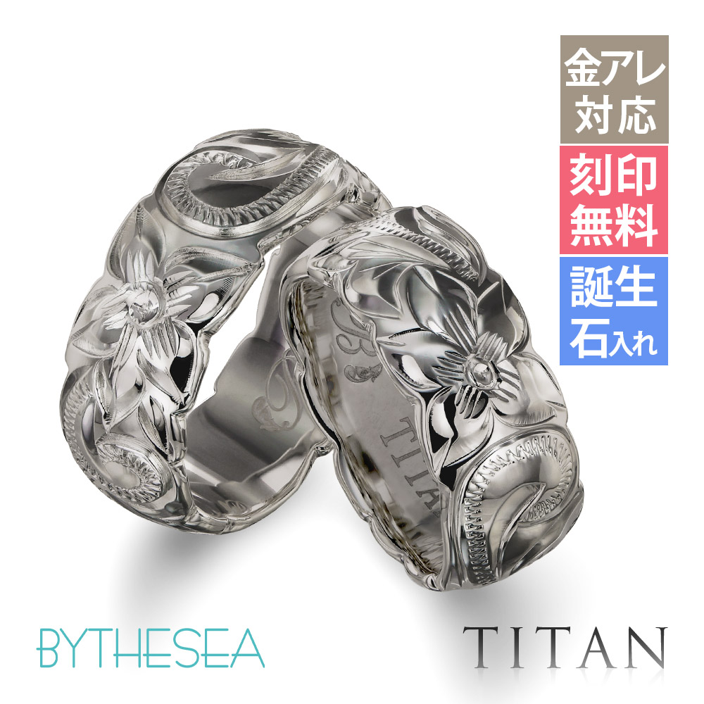 ペアリング 金属アレルギー対応 ハワイアンジュエリー 指輪 刻印無料 誕生石入れ可 純チタン 2個セット 7号〜29号 ブランド TIR203P 40代 50代 30代 20代