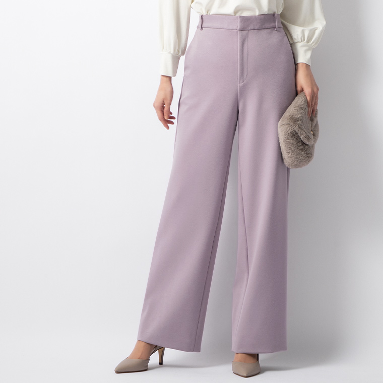 | ★最適サイズ/S ミミグラントの服はいつもSサイズを着ています。 このパンツもSが丁度良いです。 ウエスト、ヒップはジャストサイズ。 後ろのゴムを伸ばしてはいている感じは無いので、ウエストがもう少し太くても全然大丈夫そうです。 着丈は床から1cmくらい。ペタンコ靴でもパンプスでもキレイな丈です。 Sトールは床に引きずってしまいます。 厚みがありフォルムがキレイに出る生地なので、あちこちの肉感が出にくくエレガントです。 私は下半身太めの腿ハリ体型でパンツが苦手でしたが、このパンツはワタリ幅があるので腿の出っ張りも拾わず、腰から下にストンと落ちてくれる感じでとっても気に入りました♪ | |