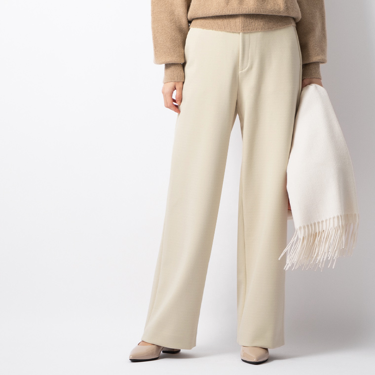 | ★最適サイズ/S ミミグラントの服はいつもSサイズを着ています。 このパンツもSが丁度良いです。 ウエスト、ヒップはジャストサイズ。 後ろのゴムを伸ばしてはいている感じは無いので、ウエストがもう少し太くても全然大丈夫そうです。 着丈は床から1cmくらい。ペタンコ靴でもパンプスでもキレイな丈です。 Sトールは床に引きずってしまいます。 厚みがありフォルムがキレイに出る生地なので、あちこちの肉感が出にくくエレガントです。 私は下半身太めの腿ハリ体型でパンツが苦手でしたが、このパンツはワタリ幅があるので腿の出っ張りも拾わず、腰から下にストンと落ちてくれる感じでとっても気に入りました♪ | |