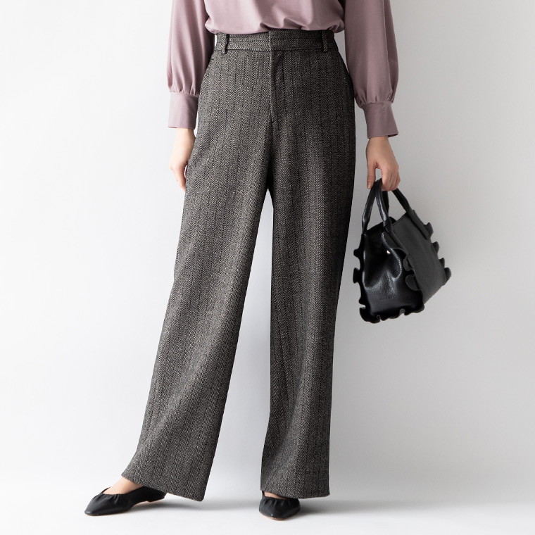 | ★最適サイズ/S ミミグラントの服はいつもSサイズを着ています。 このパンツもSが丁度良いです。 ウエスト、ヒップはジャストサイズ。 後ろのゴムを伸ばしてはいている感じは無いので、ウエストがもう少し太くても全然大丈夫そうです。 着丈は床から1cmくらい。ペタンコ靴でもパンプスでもキレイな丈です。 Sトールは床に引きずってしまいます。 厚みがありフォルムがキレイに出る生地なので、あちこちの肉感が出にくくエレガントです。 私は下半身太めの腿ハリ体型でパンツが苦手でしたが、このパンツはワタリ幅があるので腿の出っ張りも拾わず、腰から下にストンと落ちてくれる感じでとっても気に入りました♪ | |