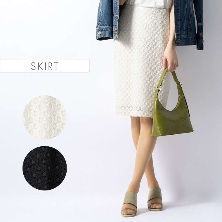 | ★最適サイズ/S いつもミミグラントのワンピースは、Sサイズを選んでいます。 このスカートも、Sサイズがウエスト、丈感、幅すべてジャストサイズでした。 丈は、ちょうど膝が隠れる程度の長さになりました。 試しにMサイズも着用してみましたが、ウエストはぶかぶか、丈は膝下丈になり、大きめのスカートをいかにも穿いているといった見た目で、着やせ効果は微妙な感じに。 せっかくのタイト感も出したいし、着やせ効果も欲しいので、Sサイズを選びます(*^^)v 一般的なレースのスカートは伸びないものが普通なので、着心地の良くないものが多い中、伸びる素材のレーススカートというのはレア! | |