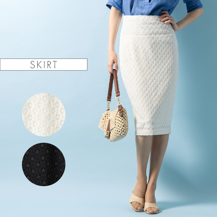 | ★最適サイズ/S ミミグラントのワンピースもスカートも通常からSを着用しています。 これもSで丁度良く体に沿います。 ウェストは少し緩め、ヒップは余るところなくピッタリな着心地です。丈は膝下5cmくらいでふくらはぎが膨らみ始める手前辺りになりました。 後ろにスリットもある上にレースも裏地も全てに伸縮性があるため、ミモレ丈のレーススカートなのにとても動きやすく長時間座っていてもノンストレスです♪ Mサイズも試着しましたが、ウェストも腰回りも余り気味で着やせ感と女っぽい感じがなくなりました。 このミモレタイトシリーズはヒップのサイズ感を重視して選ぶのがおススメです。 着やせと女っぽさを狙うなら大きめサイズよりも小さめサイズを選ぶ方が綺麗なシルエットになります。 | |