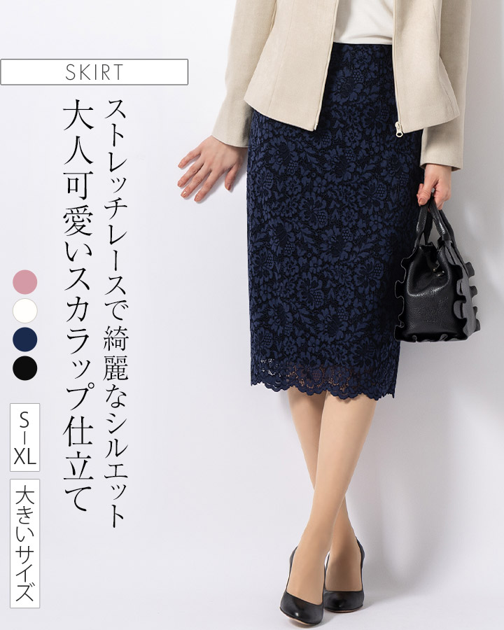 | ★最適サイズ/L いつもミミグラントのワンピースは、バストを基準にLかLトール、またはXLサイズを選んでいます。 (伸縮性が低く厚手の無地(コンフォート)のケリーYラインやXラインはXLサイズを着用です) Lサイズは少し余裕のあるフィット感で一番きれいに着用ができました。 どこにもテンションがかからないので着心地抜群です♪ 着丈は表生地のレースで膝がすっぽり隠れるミモレ丈。 レースの透け感が大人エレガントです。 Mサイズはぴったりフィットで着やせ度増しますが、若干下着の線を拾いますのでタイトに着用したい時はガードル等の着用がおすすめです(^^) ぴったりなのに伸縮性があるので圧迫感もありません。 XLサイズはぶかぶかでウエスト位置も落ちてしまうくらい緩かったです。 伸縮性もあってノーストレスでエレガントになれちゃう万能スカートです! | |