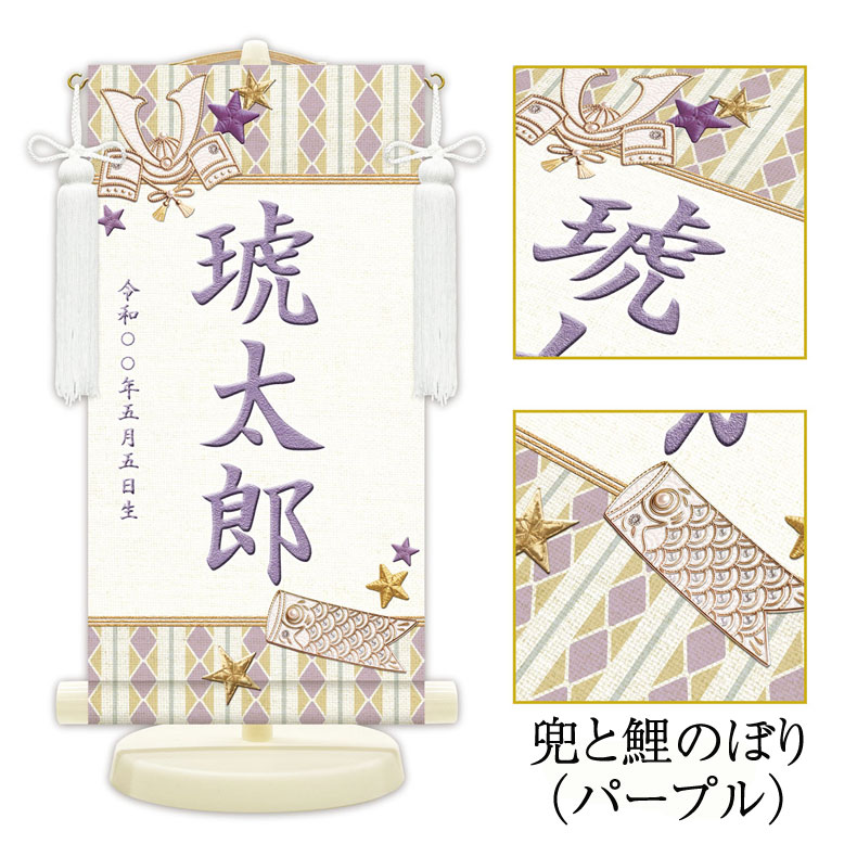 おしゃれな名前タペストリー 名前掛け軸 モダン名前旗 兜と鯉のぼり 洋風 五月飾り 名入れ代込み 男の子 初節句 端午の節句 五月人形 贈り物 お祝い 送料無料