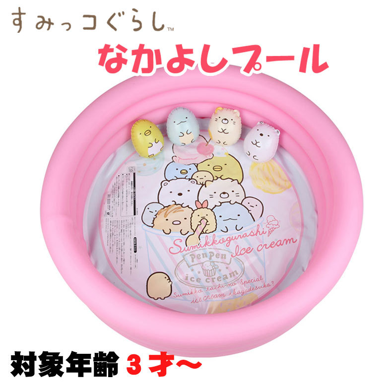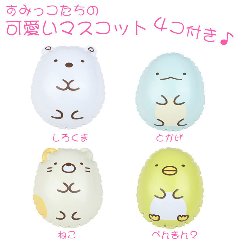 すみっコぐらしのビニールプールです。すみっコぐらしのキャラクタービニールマスコットが4体セットになっています。
