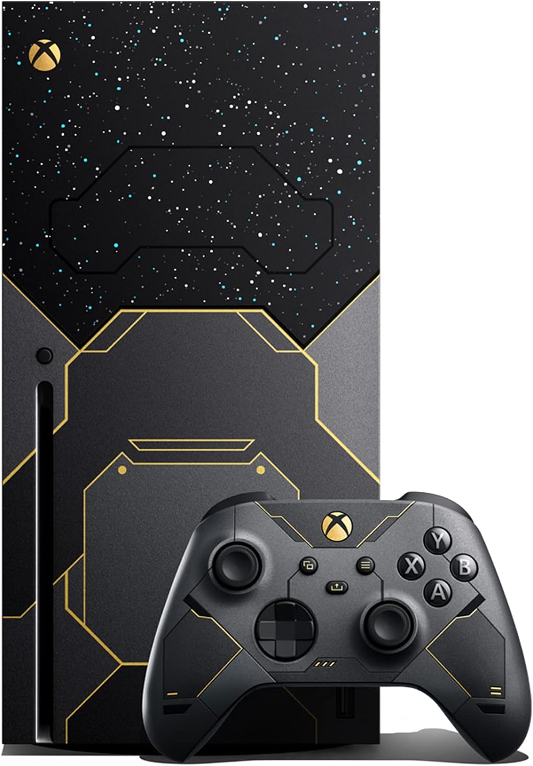 Halo 誕生 20周年を記念して、マスターチーフが今までにない冷酷な敵に立ち向かうために開発された製品です。マスターチーフのアーマーをイメージし、ダーク メタリックなパネルにイリジウム ゴールドのアクセントを加えた本体と、それに合わせてデザインされた、側面およびグリップの背面に滑りにくく操作しやすい加工を施した特別デザインのコントローラーは、あらゆるプレイ スタイルに対応します。本体設定後にダウンロード可能な Halo Infinite (ゲーム発売日から利用可能) ゲーム本体を同梱しています。これまででもっとも広大なマスターチーフの物語を体験し、Halo に秘められた壮大な謎を探求し、画期的な無料プレイのマルチプレイヤーでより多くのプレイヤーとマルチプレイを楽しむことができます。最大4K、毎秒60 フレームでゲームを楽しむことができ、毎秒120フレームに対応したマルチプレイヤー アリーナ、進化した立体音響などが楽しめます。