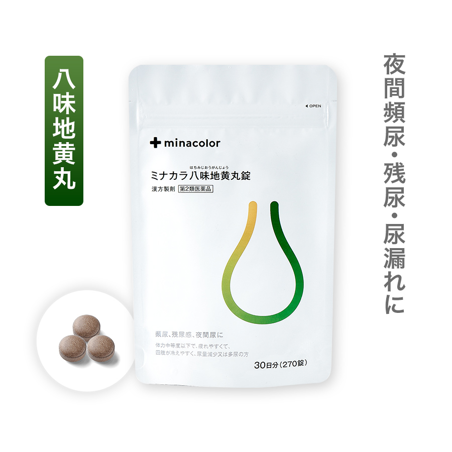 | 成分分量 | 1日量(9錠)中 八味地黄丸エキス(1/2量)……2200mg ジオウ……2.5g サンシュユ……1.5g サンヤク……1.5g タクシャ……1.5g ブクリョウ……1.5g ボタンピ……1.5g ケイヒ……0.5g ブシ末……0.5g より抽出。 |