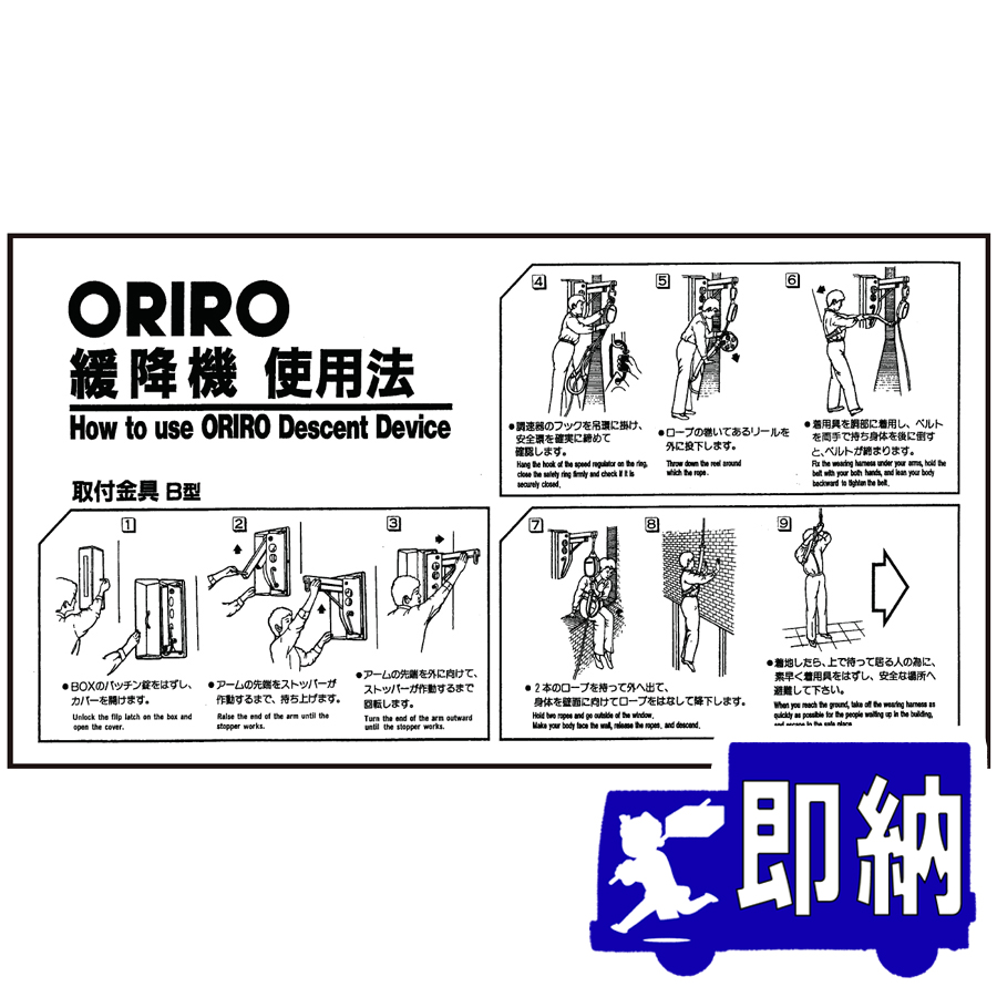 【AM注文確定で即日出荷!】ORIRO専用表示板 B型使用法 K-005Y(A-4)「ORIRO緩降機使用法」 600×300mm オリロー【避難はしご 標識・表示板】